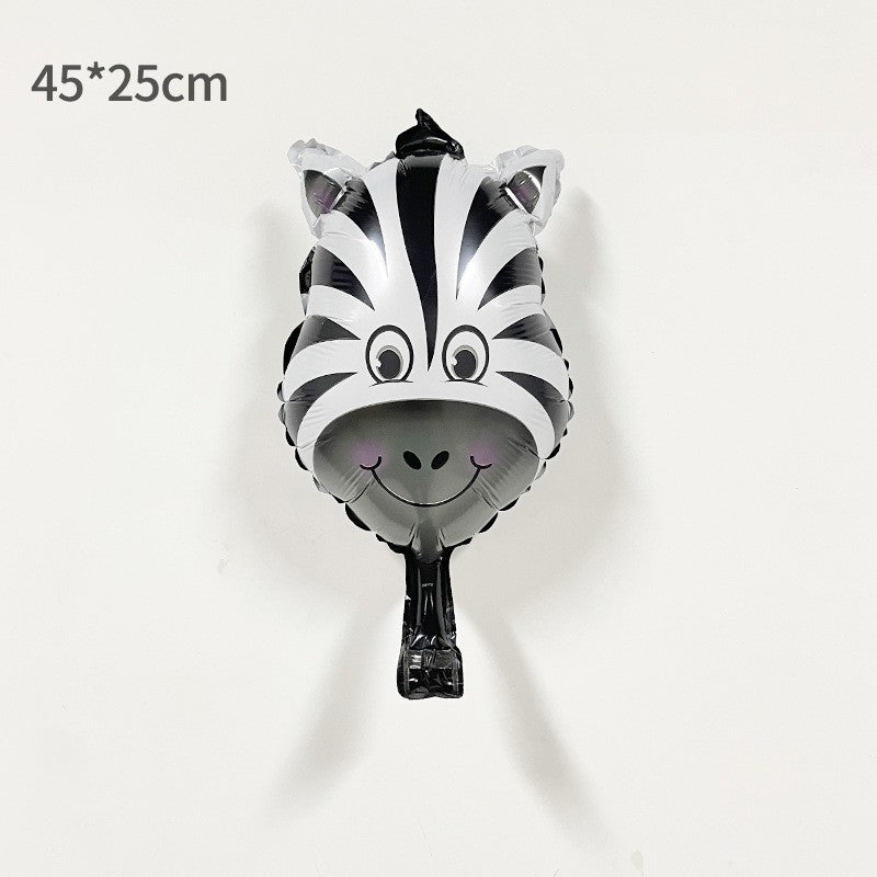 Balon din Folie Metalizata, Mini Figurine Animalute, Model Zebra, Tematica Aniversare,Ambalaj Individual, Pai Inclus, Umflare cu Aer sau Heliu