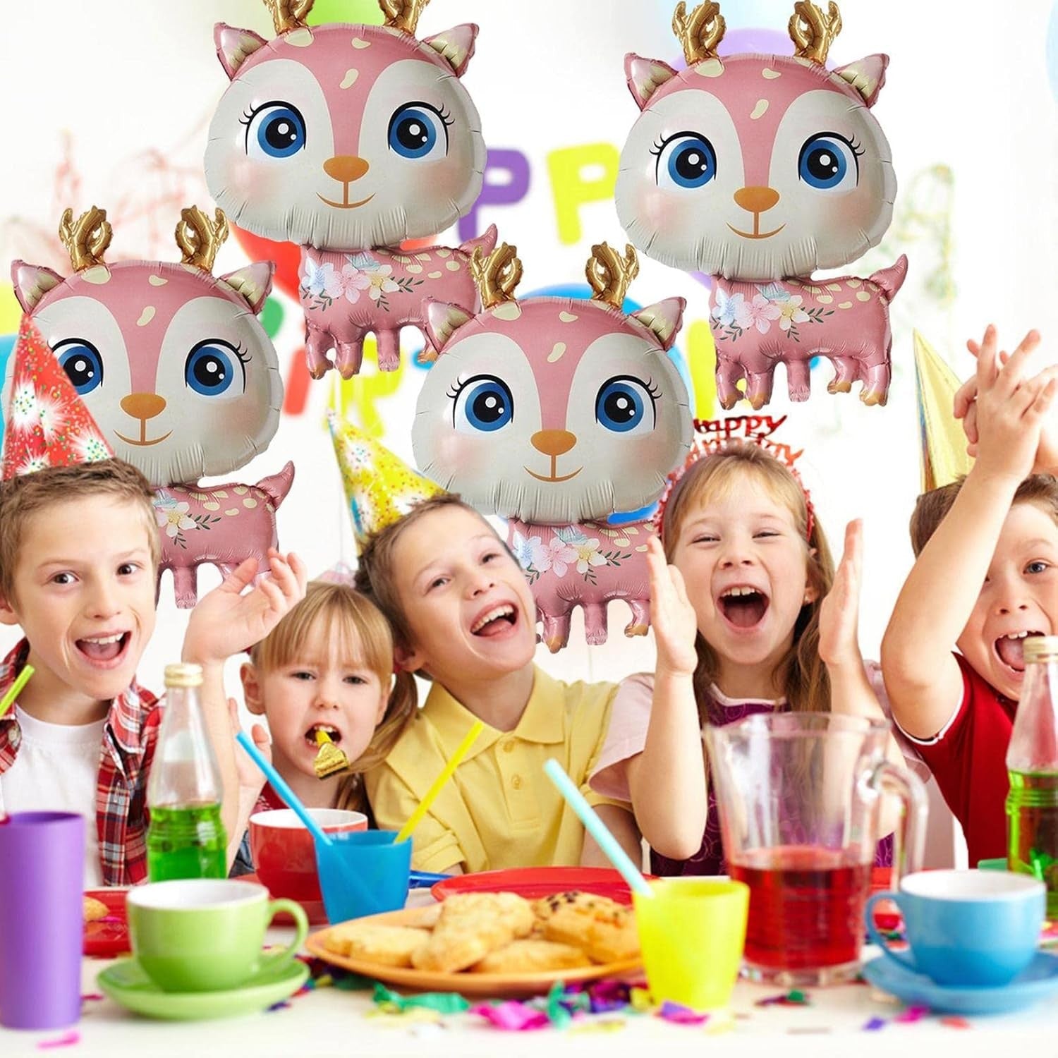 Balon din Folie Metalizata, Mini Figurine, Model Cerb, Tematica Aniversare,Ambalaj Individual, Pai Inclus, Umflare cu Aer sau Heliu