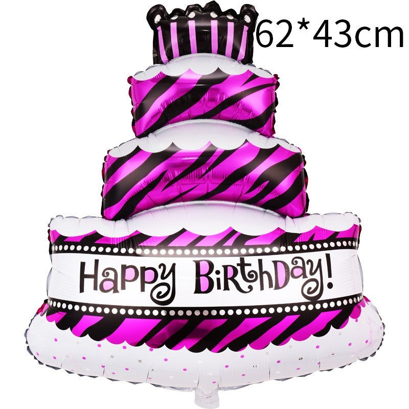 Balon din Folie Metalizata, Model Tort cu 4 Straturi, Balon Aniversar, Model Happy Birthday,Ambalaj Individual, Pai inclus, Umflare cu Aer sau Heliu
