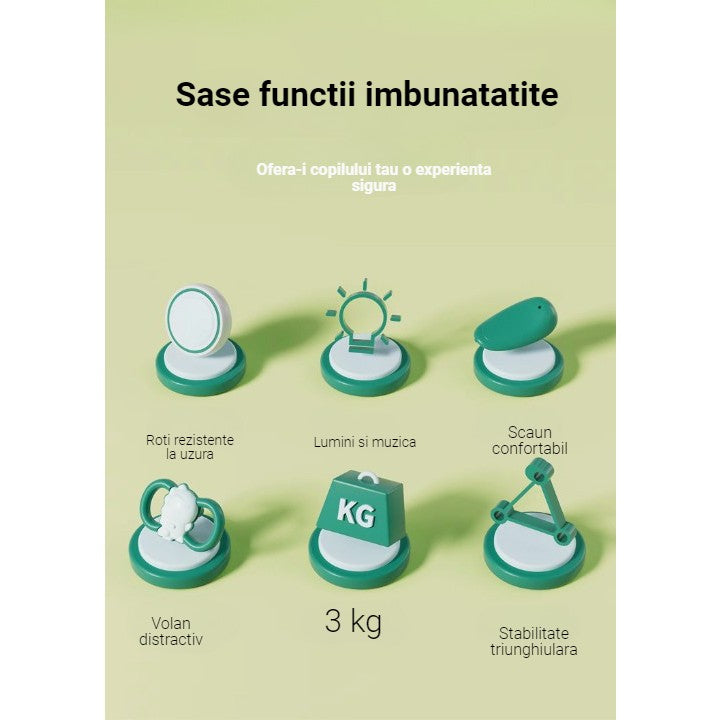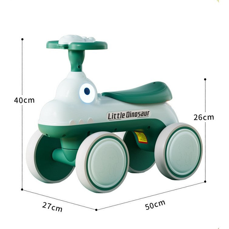 Bicicleta Pentru Copii, Fara Pedale, Cu Patru Roti, Din Plastic Rezistent, Fara BPA, Cu Muzica Si Lumini, Model Dinozaur