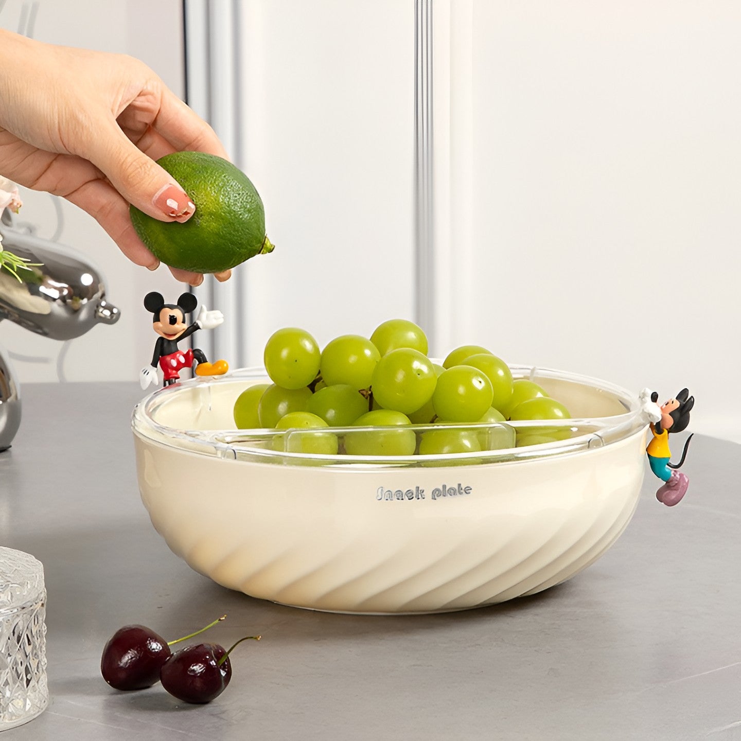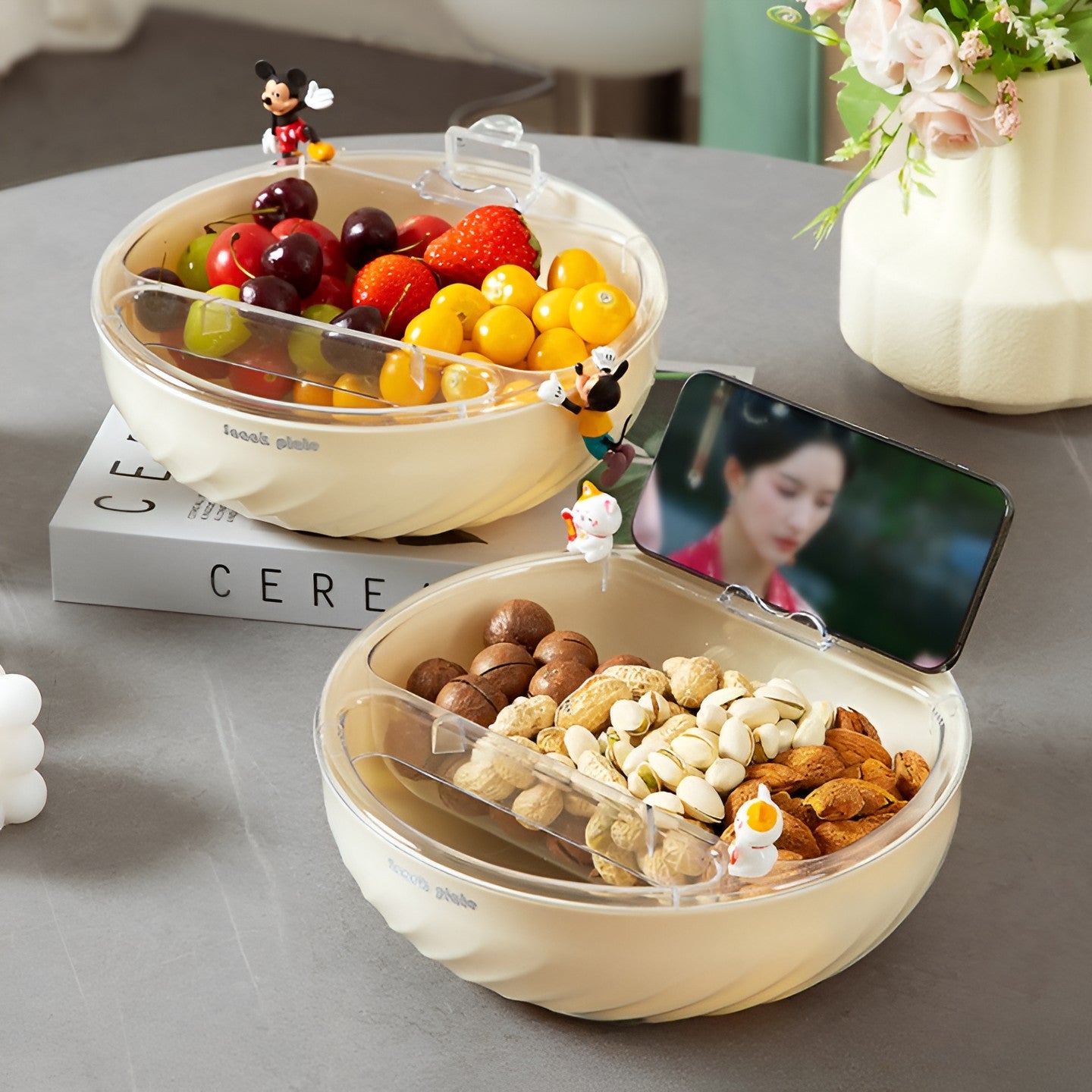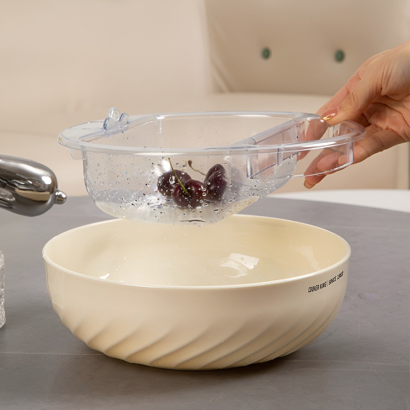 Bol cu Doua Straturi, pentru Fructe, Legume, Snacks, cu Strat de Scurgere a Apei, Suport pentru Telefonul Mobil