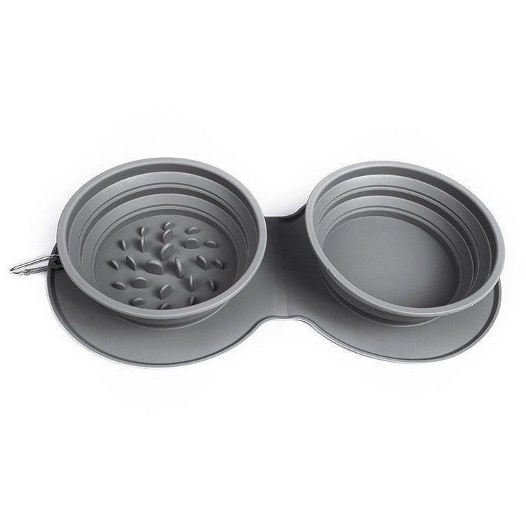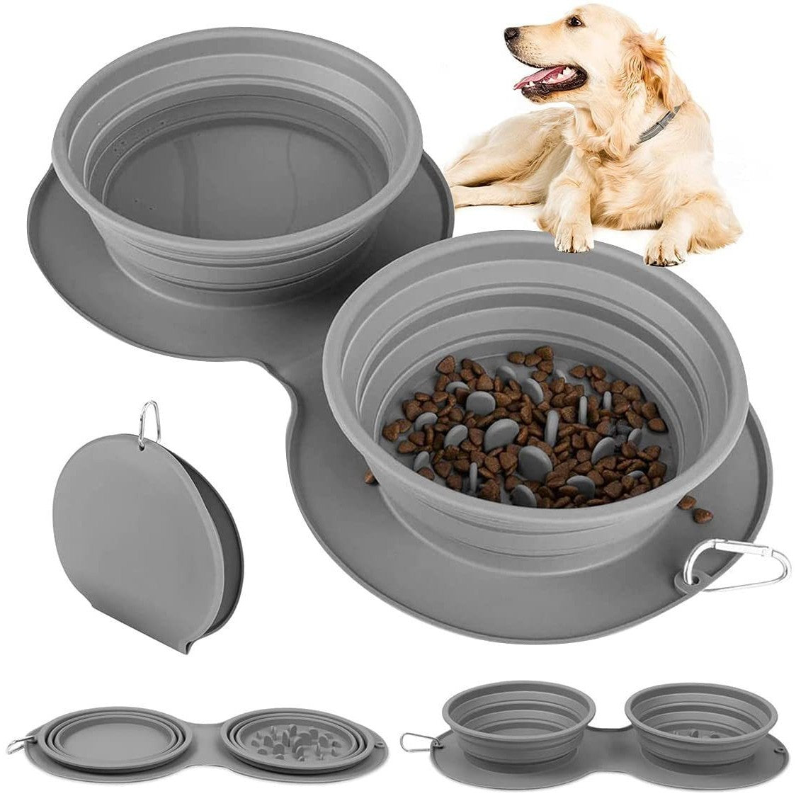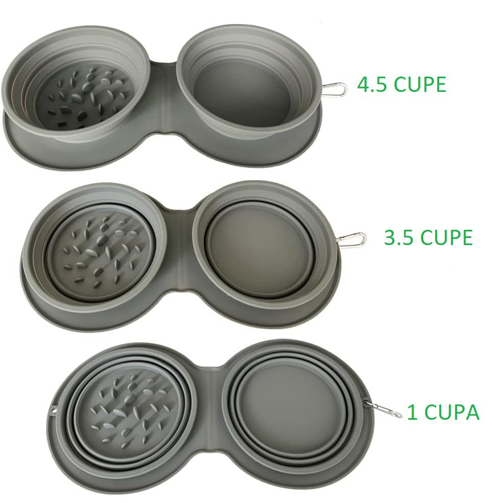 Bol Dublu pentru Animalul de Companie, din Silicon, Pliabil, Inaltime Reglabila, Antialunecare