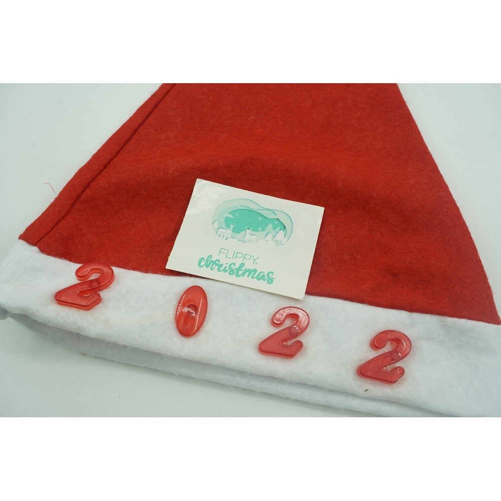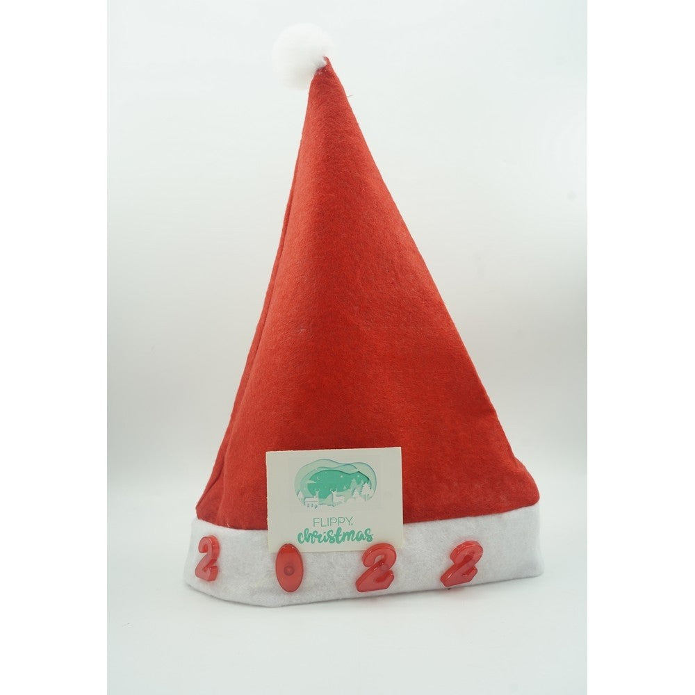 Caciulita de Mos Craciun, cu inscriptie 2022 si led, rosie, marime universala, poliester