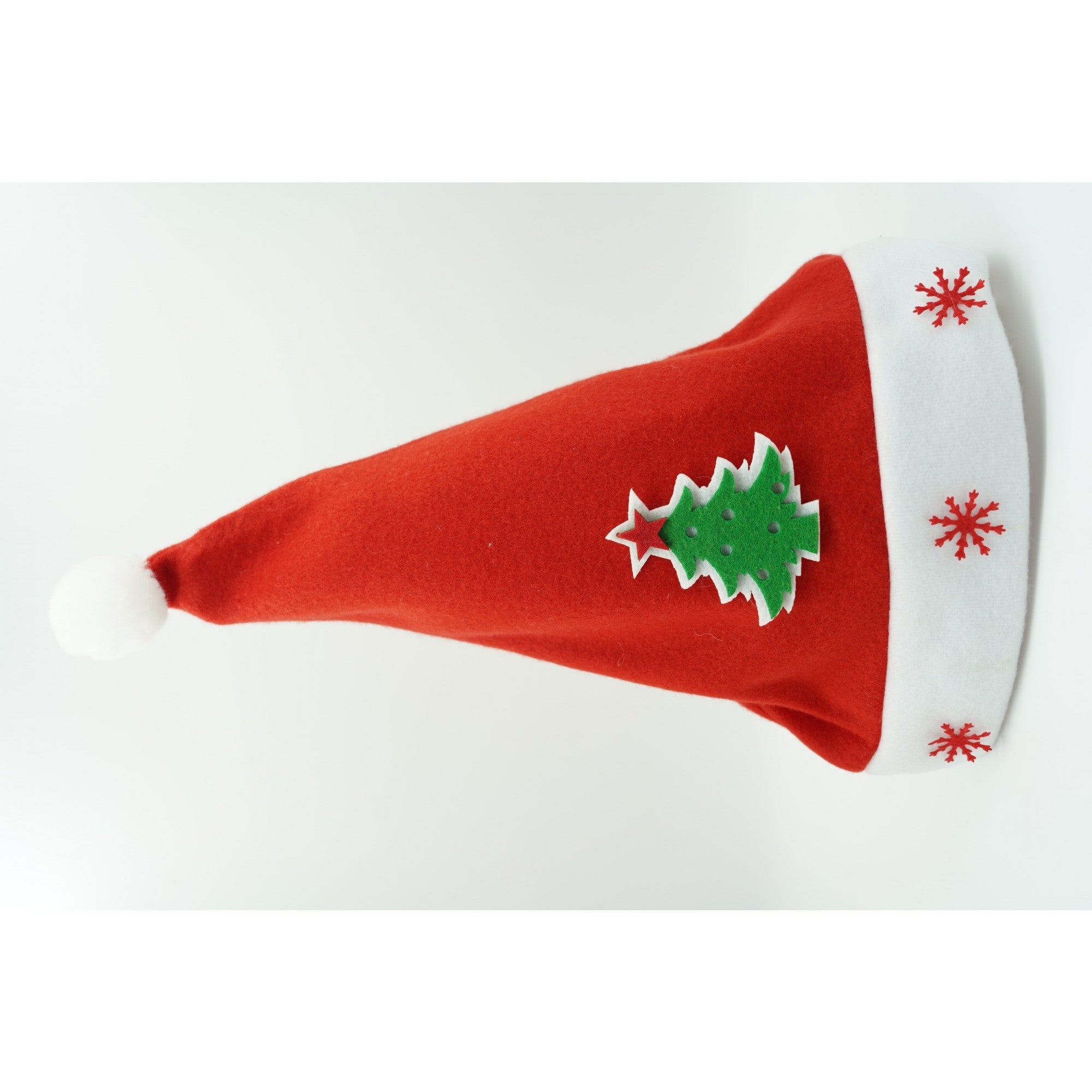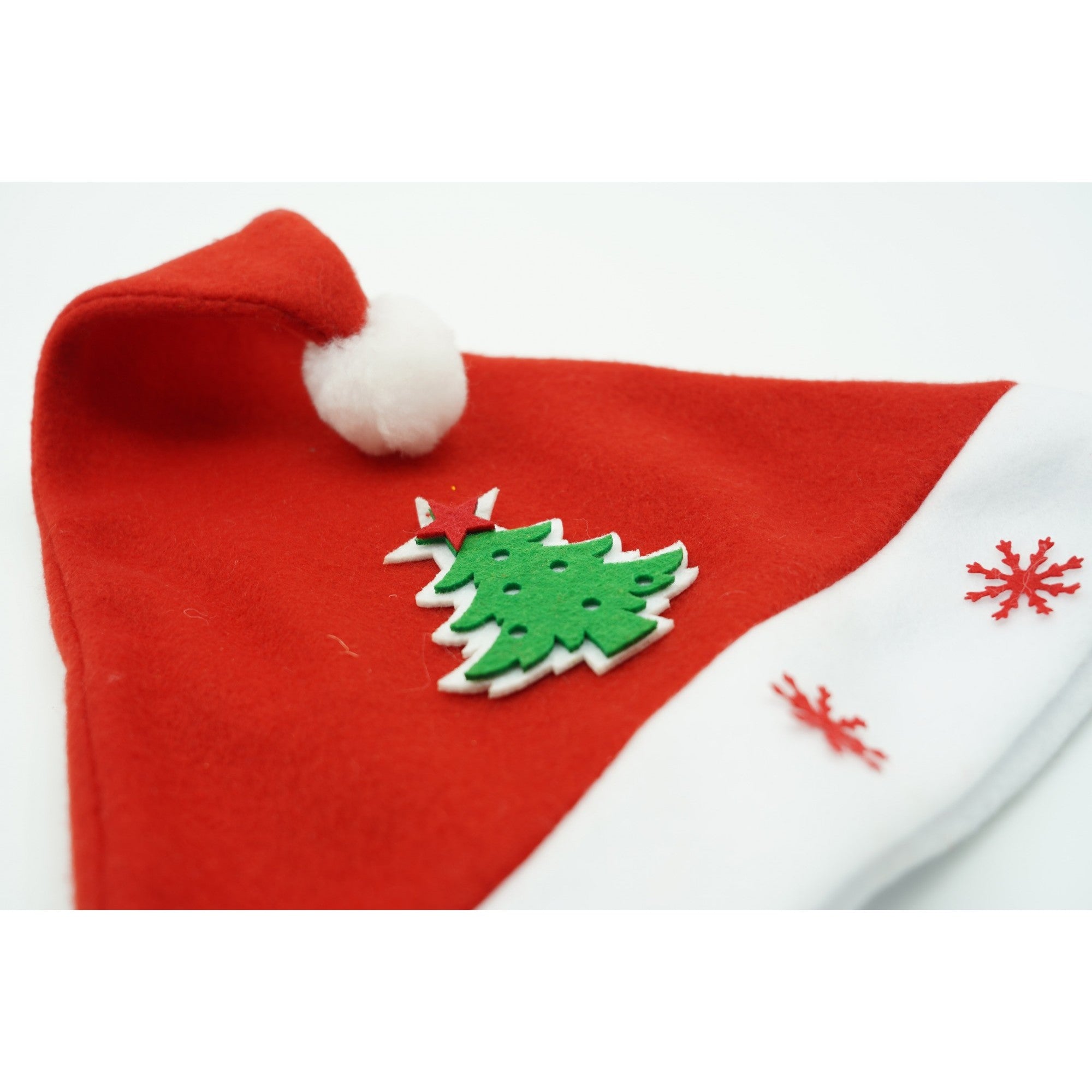 Caciulita de Mos Craciun, cu model de Brad si ornament fulg de nea, rosie, marime universala, material textil