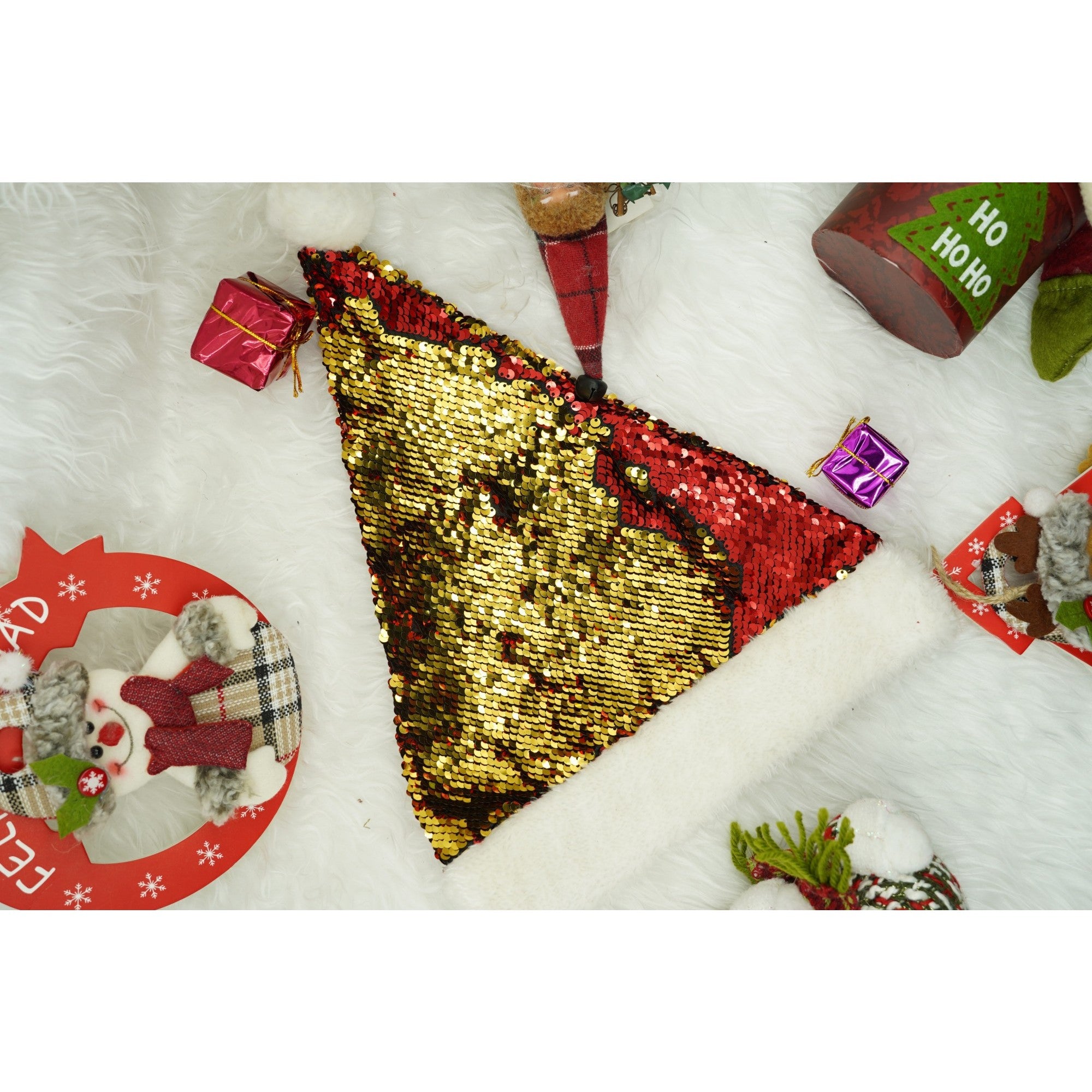 Caciulita de Mos Craciun, cu strasuri, in 2 culori, rosie - aurie, marime universala, material textil