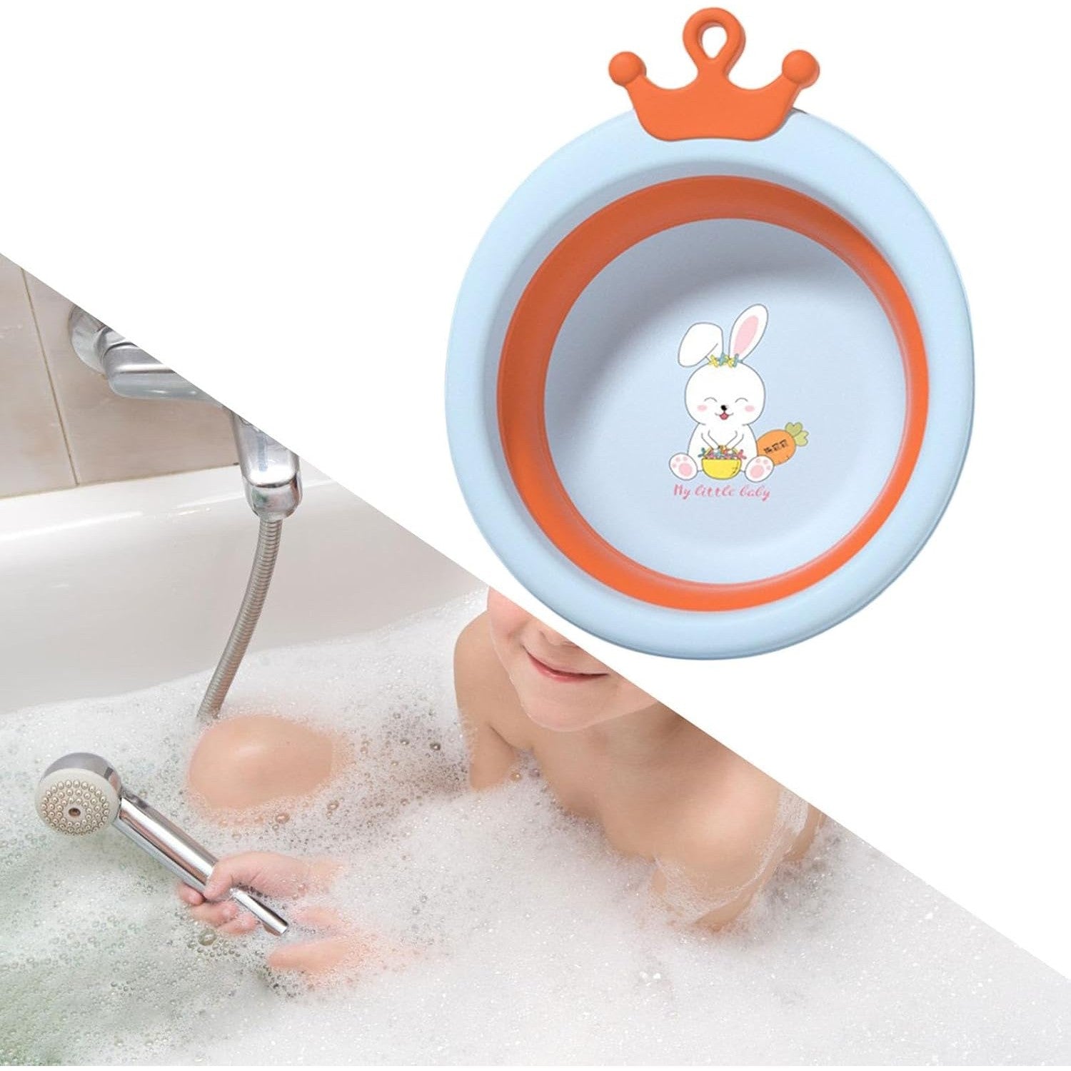 Cada Pliabila pentru Baie pentru Copii, Cadita pentru Bebelusi, Model Rotund cu Iepuras, Blue,3.3 L