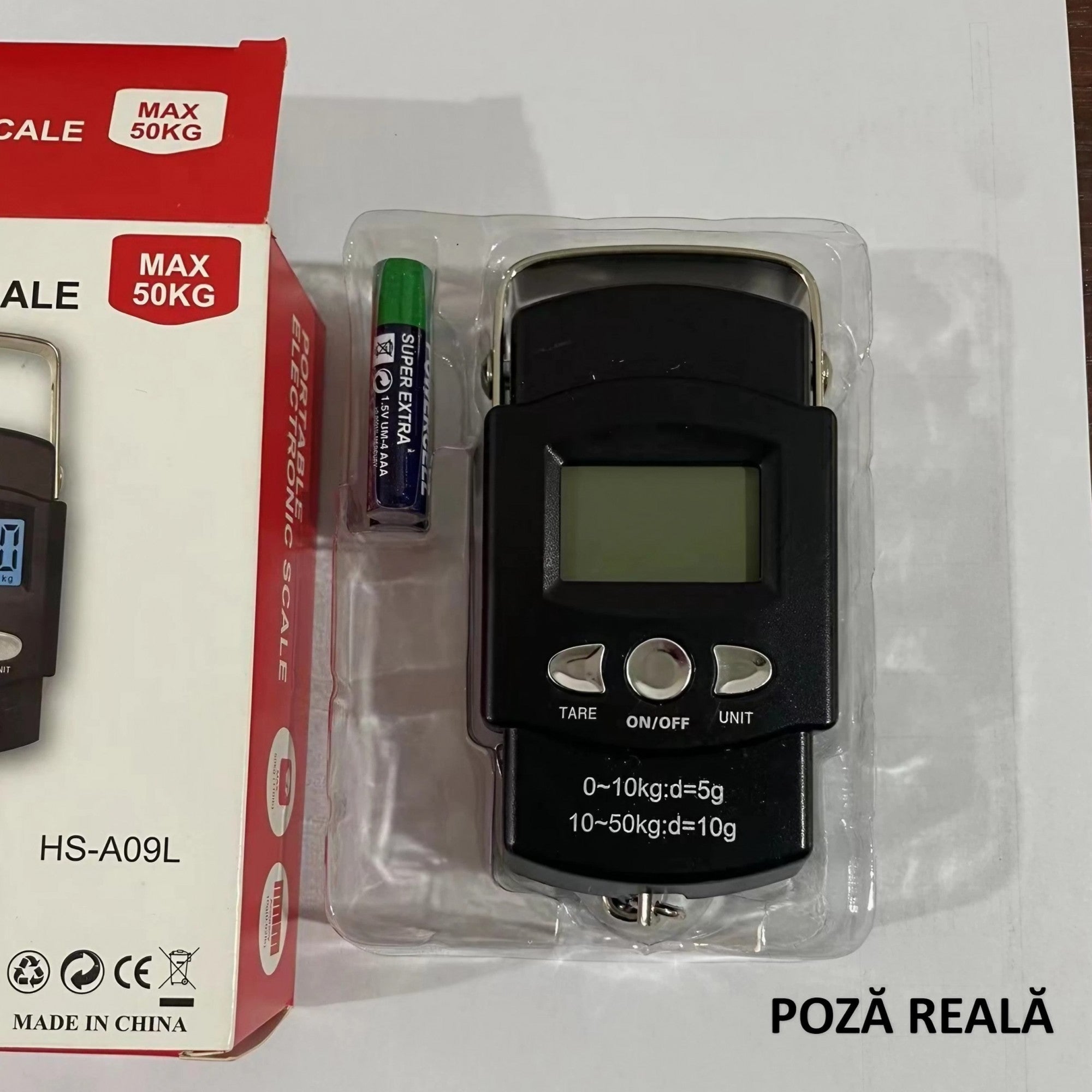 Cantar Digital de Mana cu Carlig, Cantar Portabil, Pescuit, cu Maner, Capacitate 50 kg, cu Metru Incorporat