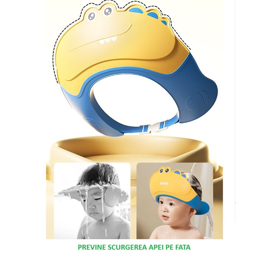 Casca de Dus, Previne Scurgerea Apei si Samponului pe Fata, 0-12 Ani, Ajustabila, din TPE+PP,Model Crocodil