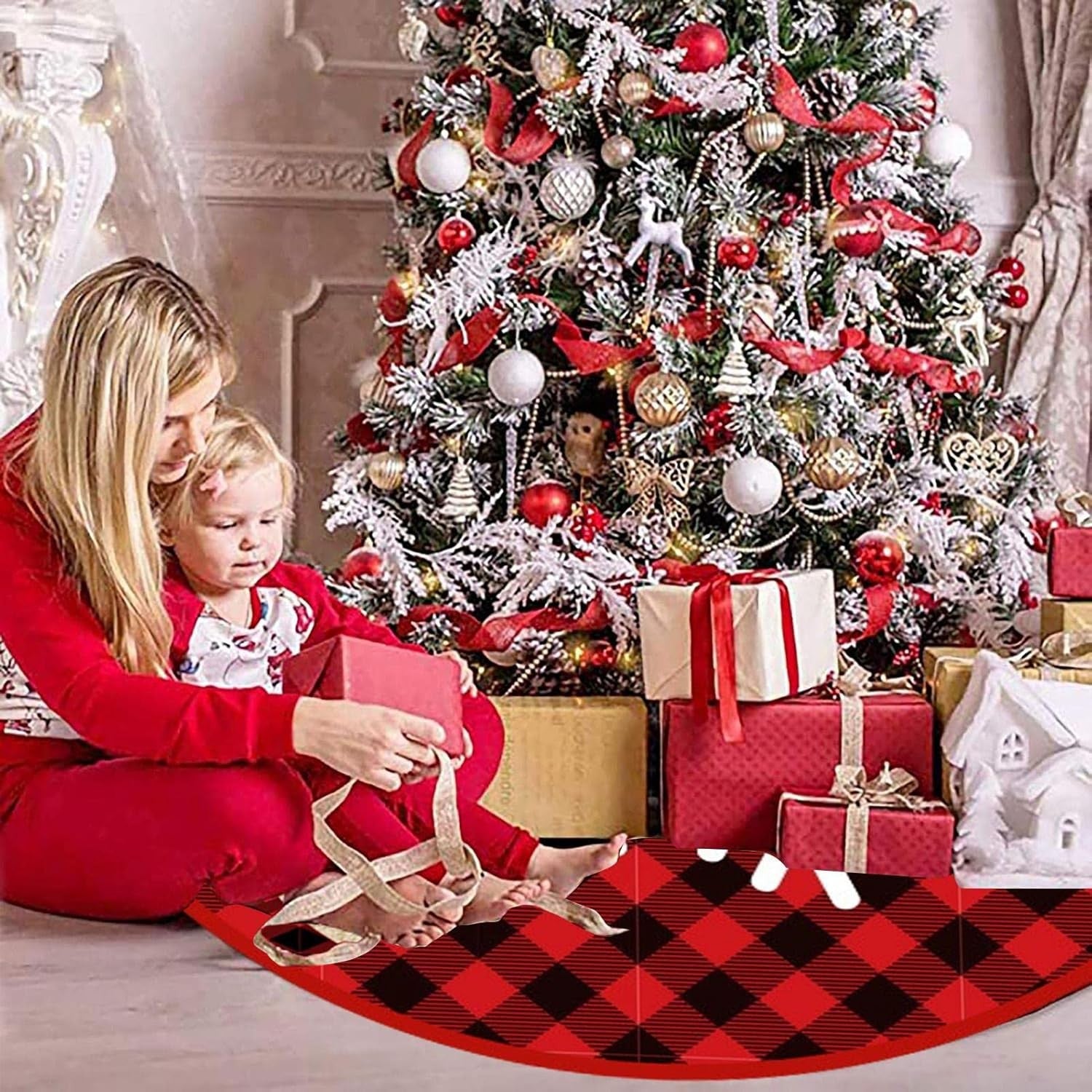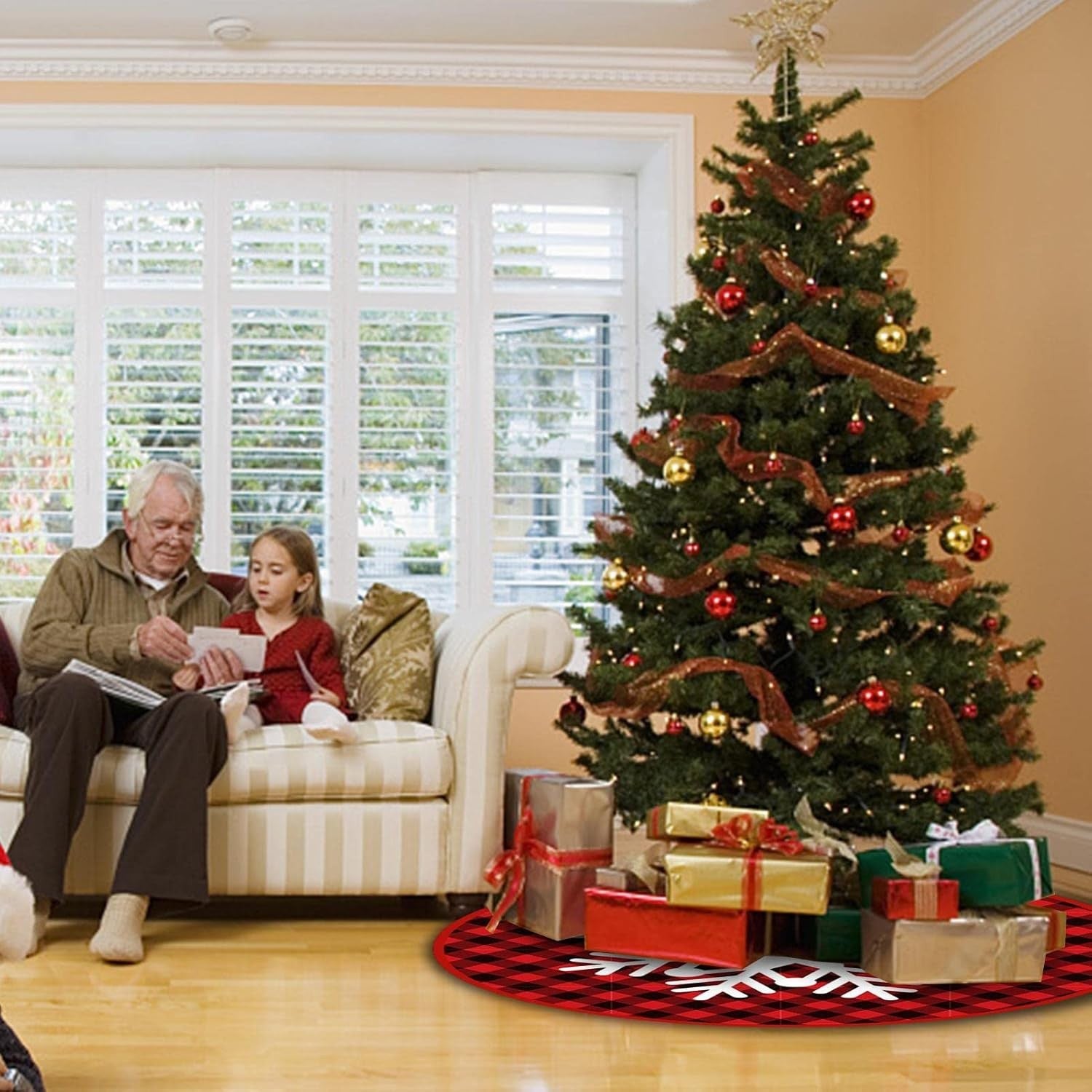 Covoraș pentru bradul de Crăciun - Model Fulg de Nea, Carouri Transformă-ți decorul de sărbători într-un spațiu magicu ajutorul covorașului pentru bradul de Crăciun ! Acest accesoriu adorabil nu doar că adaugă un plus deleganță și confort în jurul bradului, dar îți protejează și podeaua deventuale murdării sau zgârieturi. Descriere produs: Design atrăgător: Covorașul se remarcă prin modelul său festiv de fulgi de nea, îmbinat armonios cun motiv clasic de carouri înuanțe de și . Acest contrast vibrant va completa perfect paleta de culori a sărbătorilor de iarnă și vaduce un strop de căldură și bucurie în orice cameră. Material de calitate: Realizat dintr-o țesătură pufoasă, covorașul este plăcut latingere și foarte confortabil. Această textură moale nu doar că îmbunătățește aspectul decorului, ci oferă și un loc ideal pentru a te așeza sau a te relaxa lângă bradul împodobit. Dimensiunideale: Cu dimensiuni atent gândite, covorașul se potrivește perfect subradul tău de Crăciun, amplificând frumusețeacestuia. Este suficient de mare pentru adăposti cadourile și accesoriile festive, dar nu atât de mare încât să îl facă greu de integrat în decor. Ușor de întreținut: Covorașul este ușor de curățat, asigurându-ți astfel că vei putea să îl folosești an de an. Indiferent dacă decizi să îl speli manual sau la mașină, va rămâne ca nou, pregătit pentrurmătoarea sărbătoare. Perfect pentru orice stil decor: Fie că preferi un stil clasic, rustic, modern sau eclectic, acest covoraș se integrează cușurință în orice tip de amenajare, aducând un aer festiv și primitor. Adaugă un strop de magie Crăciunului tău cu covorașul și bucură-te de cele mai frumoase momente alături de cei dragi! Acest detaliu chic estexact ceea ce îți trebuie pentru a crea o atmosferă de neuitat în zilele de sărbătoare. Covorașul pentru bradul de Crăciun este alegerea perfectă pentru aduce atmosfera magică a sărbătorilor în locuința dvs. Cu aspectul său elegant, materialele de calitate și dimensiunea potrivită, acest covoraș va deveni cu siguranță o piesă centrală în decorul dvs. festiv, aducând bucurie și căldură în timpul sărbătorilor de iarnă.