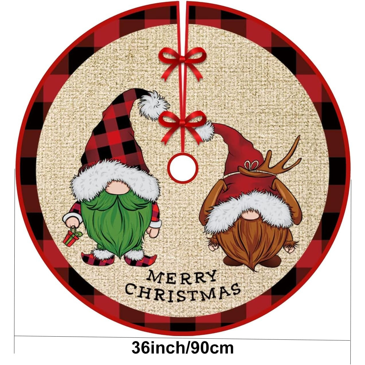 Covoras pentru Bradul de Craciun, din Tesatura Pufoasa, cu Fundite de Prindere, Model Gnomi