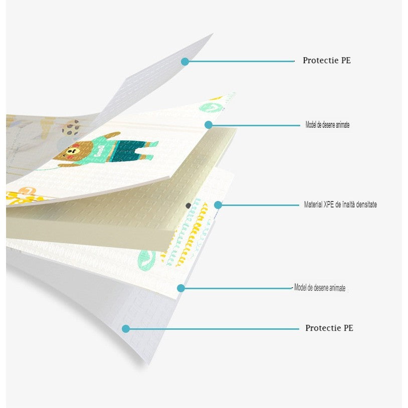 Covoraș pentru Copii – Siguranță și Confort la Joacă Covorașul este ideal pentru bebeluși copii mici, oferind un spațiu sigur, confortabil și educativ pentru joacă, t"r"re și primii pași. Cun design pliabil, impermeabil și antiderapant, acesta este potrivit pentrutilizare at"t în interior, c"t și în exterior. Caracteristici principaleMaterial de calitate– realizat din XPE + PE, sigur, moale și rezistent Imprimare față-verso– modele animate pe ambele părți, atractive pentru copiiPliabil și ușor depozitat– design compact și portabil Antiderapant și absorbant la șocuri– protejează copilul împotrivalunecărilor și loviturilorGrosime de peste jpg" src="https://platforma.teomarket.ro/descriptionImages/67ade01d75149.jpg" alt="" width="750" height="849" /> Impermeabil și ușor de curățat– suprafața PE rezistă lapă și murdărieIgnifug și fără miros– materiale sigure, fără substanțe toxice Textură educativă– litere și cifre în relief pentru stimularea învățării Beneficii✔ Protejează împotriva frigului și umezelii✔ Oferă un spațiu de joacă sigur și confortabil✔ Stimulează dezvoltarea senzorială și motorie a copilului✔ Design pliabil, ușor de transportat și depozitat Specificații tehniceMaterial: XPE + PETehnologie: imprimare prin gofrare, acoperită cu strat protectorForma: dreptunghiularăGrosime: peste jpg" src="https://platforma.teomarket.ro/descriptionImages/67ade069054ef.jpg" alt="" width="750" height="802" /> Covorașul este alegerea perfectă pentru părinții care doresc un spațiu sigur și confortabil pentru copilulor, fie că este folosit acasă, în călătorii sau în aer liber.