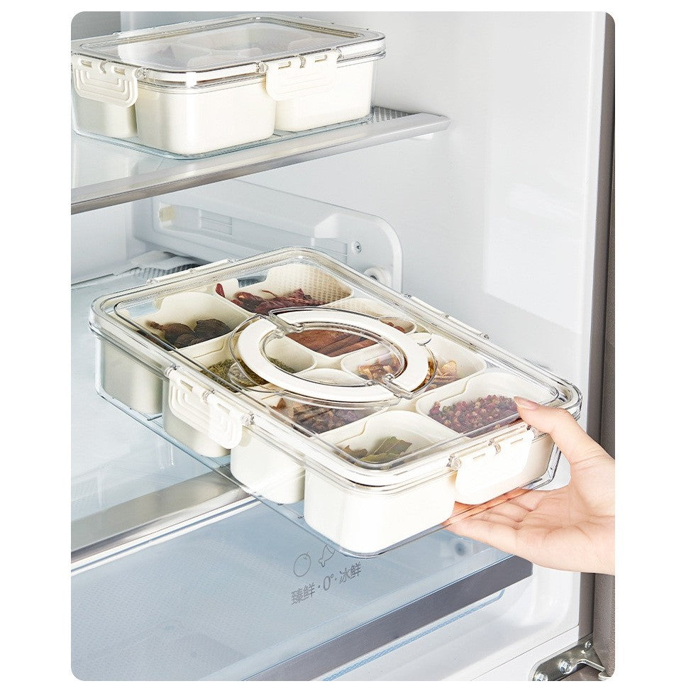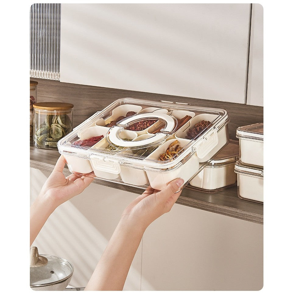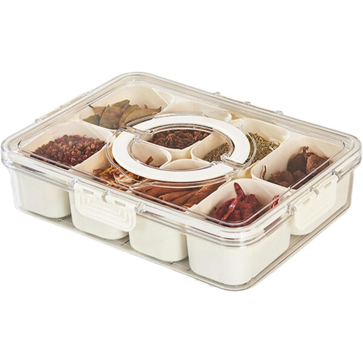 Alimentara Multifunctionala, pentru Condimente, Gustari, Inchidere Etans, cu Capac si Maner, 8 Compartimente