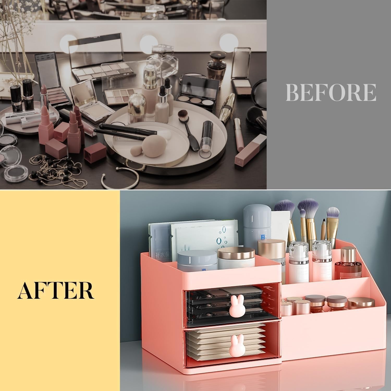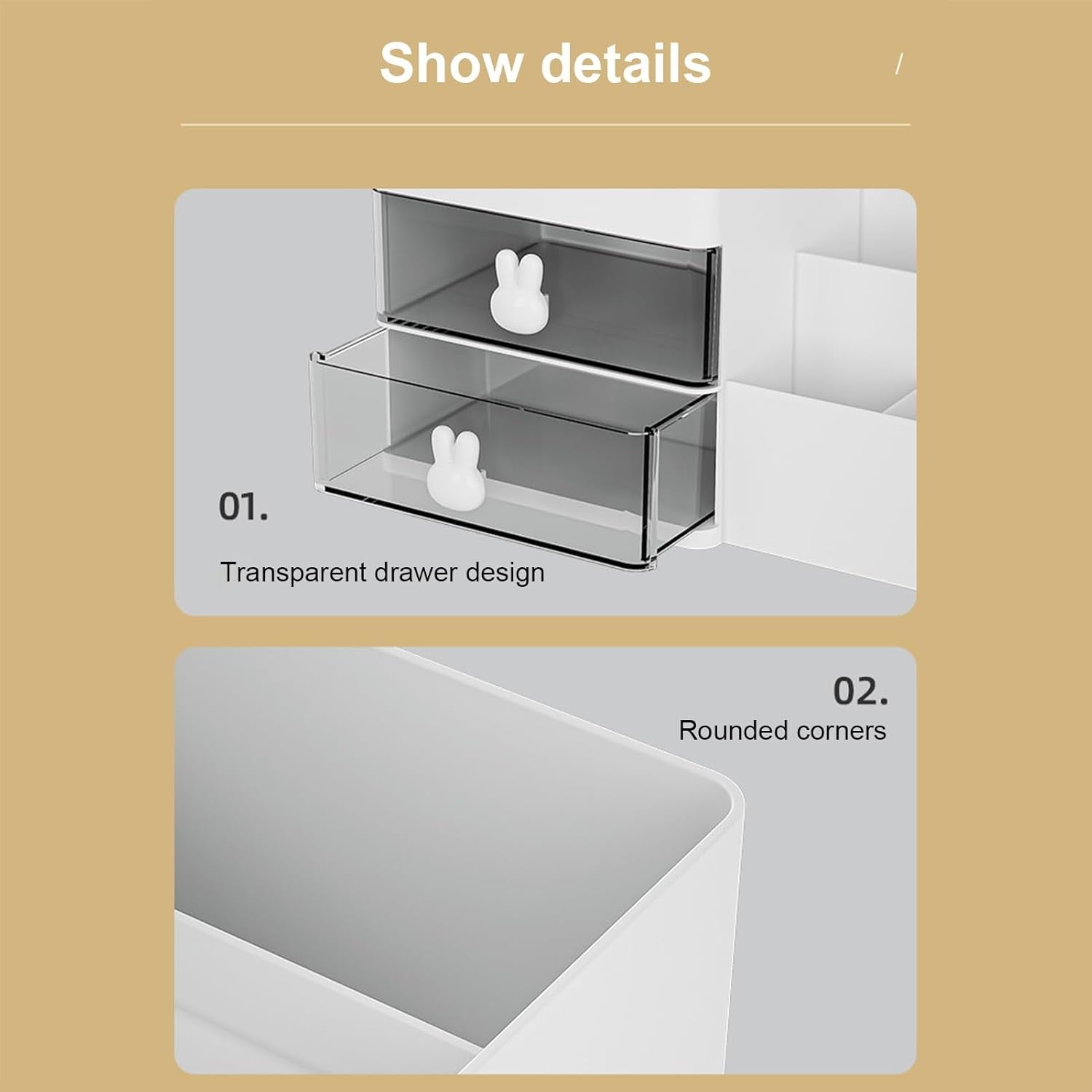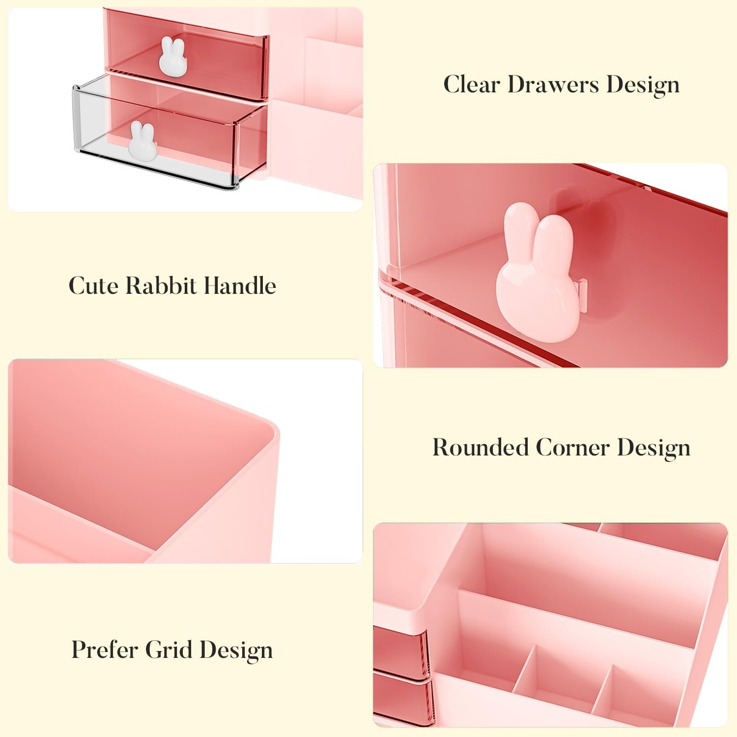 de Depozitare pentru Birou, Pentru Makeup, Papetarie, Organizator Cosmetice, 2 Sertare si Compartimente Multiple, Model Iepuras, Plastic