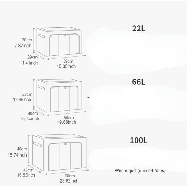 de Depozitare Pliabila, Cu fermoar Bidirectional, 66 L, Textil,Cadru Metalic, o Fereastra, Suport Baza Stabil din Plastic