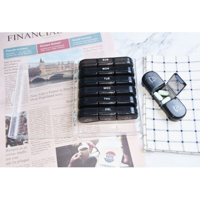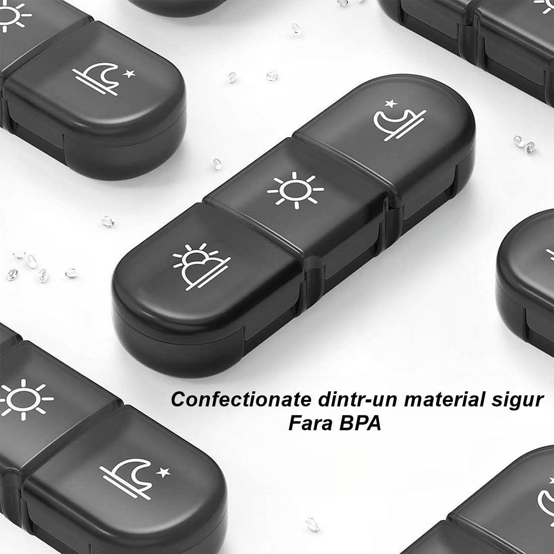 Depozitare Medicamente, 7 Zile, 21 Compartimente, Suport, Recipiente Detasabile, Portabila, Compartimente Negre, Transparenta