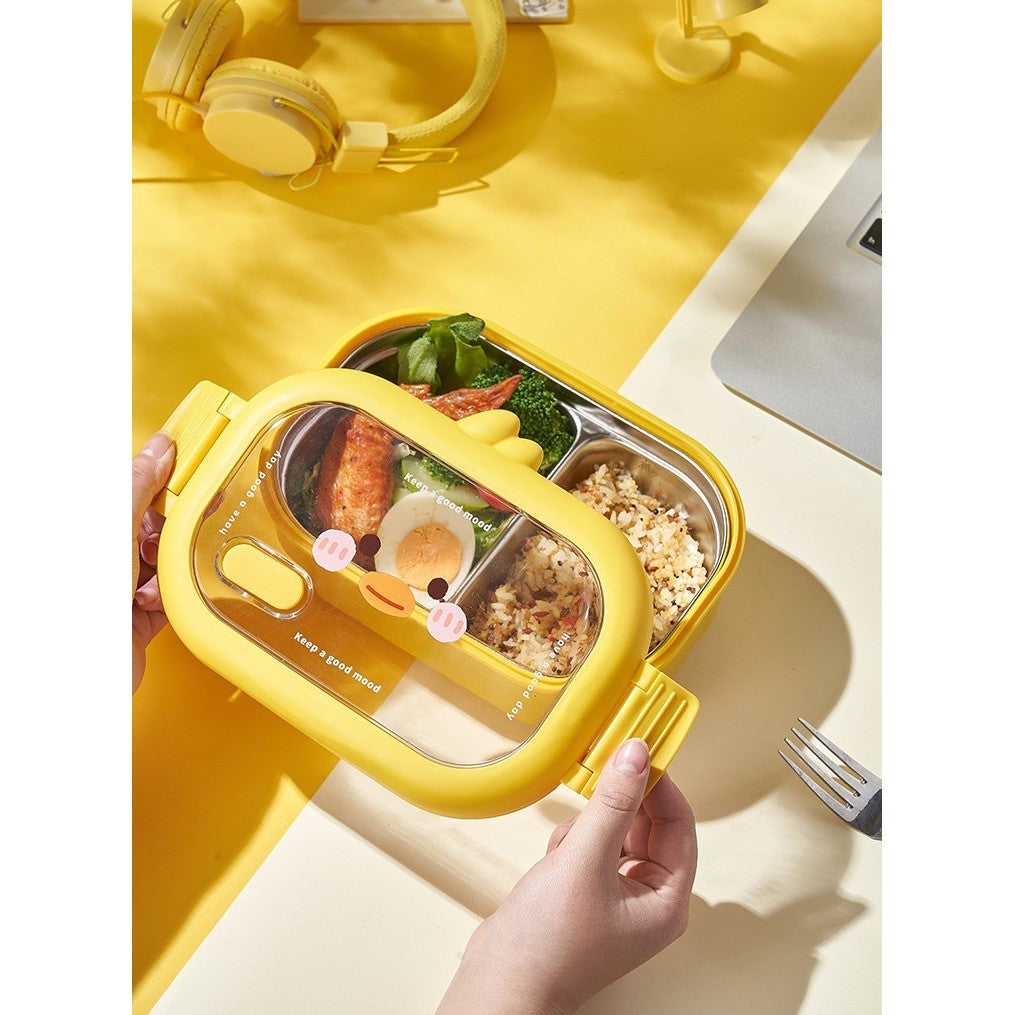 pentru Pranz sau Gustari, cu Doua Compartimente, Model Ratusca, pentru Copii si Adulti, Etansare, PP, Perfect pentru Scoala si Birou, 1000 mL