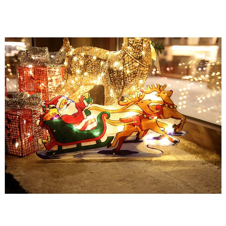 Decoratiune de Craciun pentru fereastra Sanie cu reni, cu LED-uri