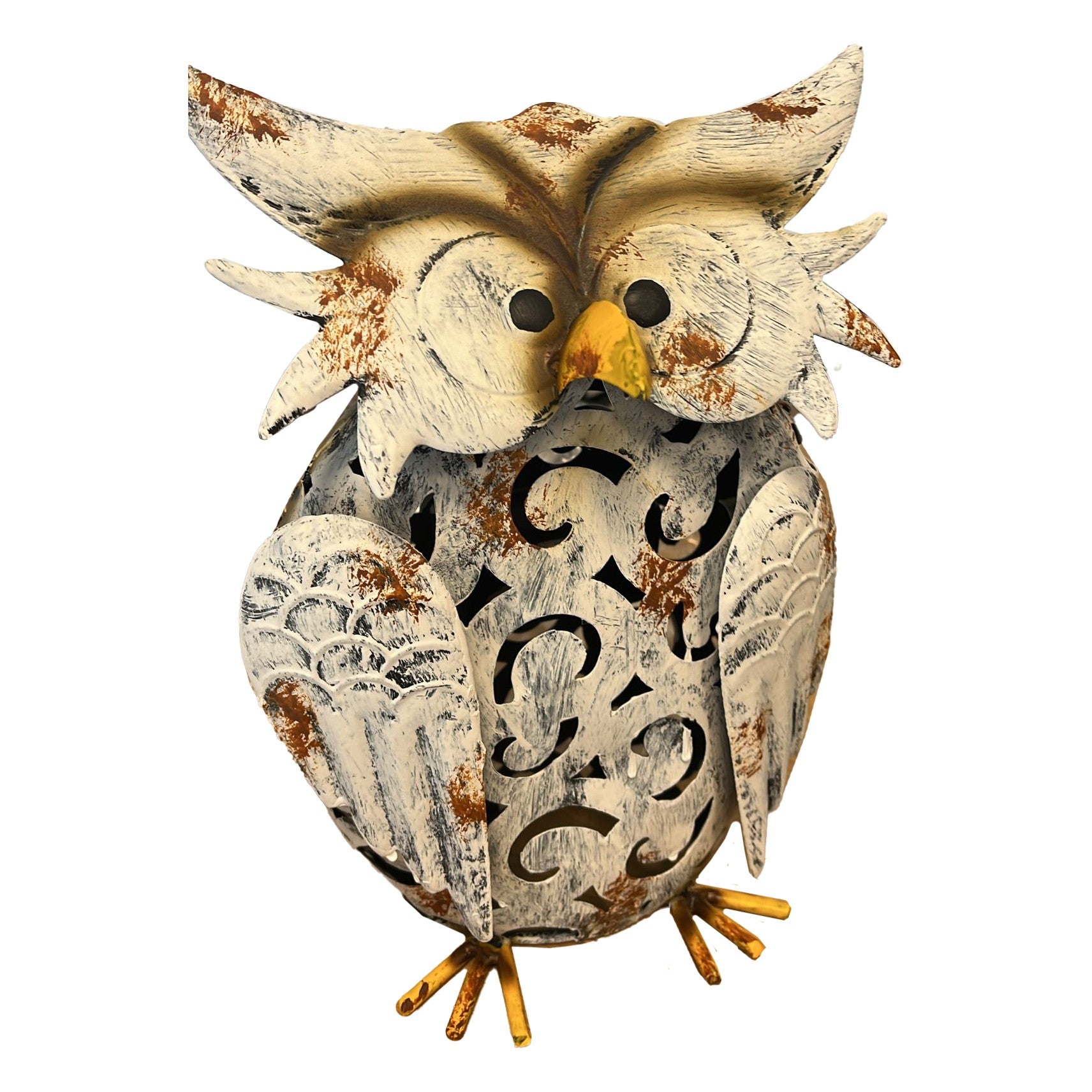 Decoratiune de Gradina cu Lampa solara, Model Bufnita, Iluminare Led si Incarcare Solara,din Fier