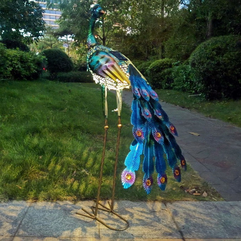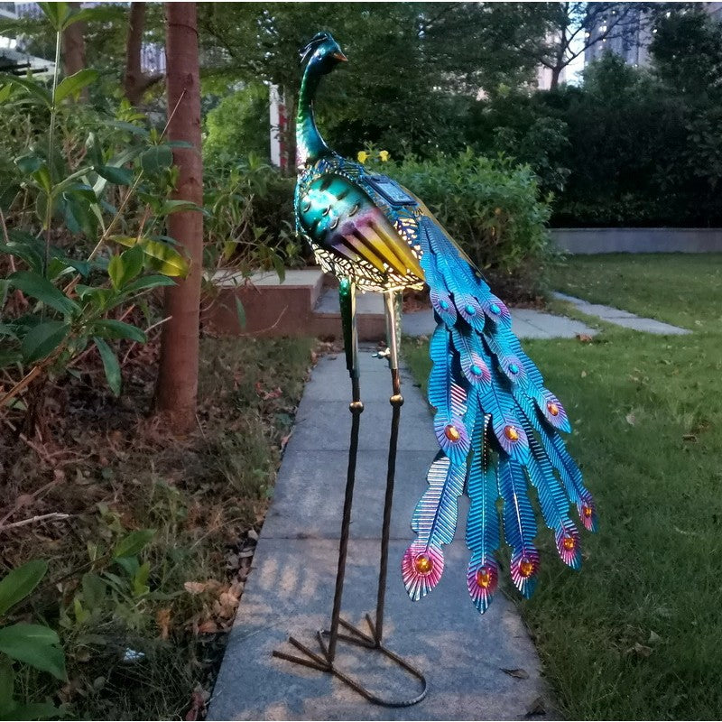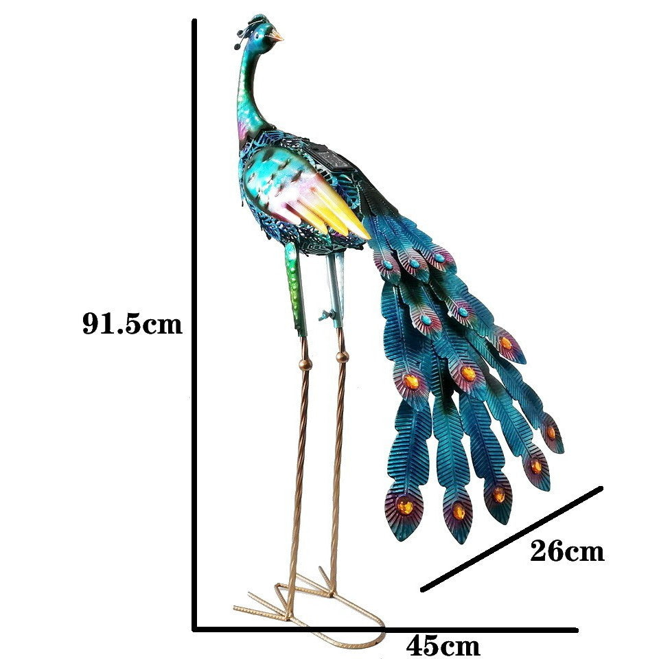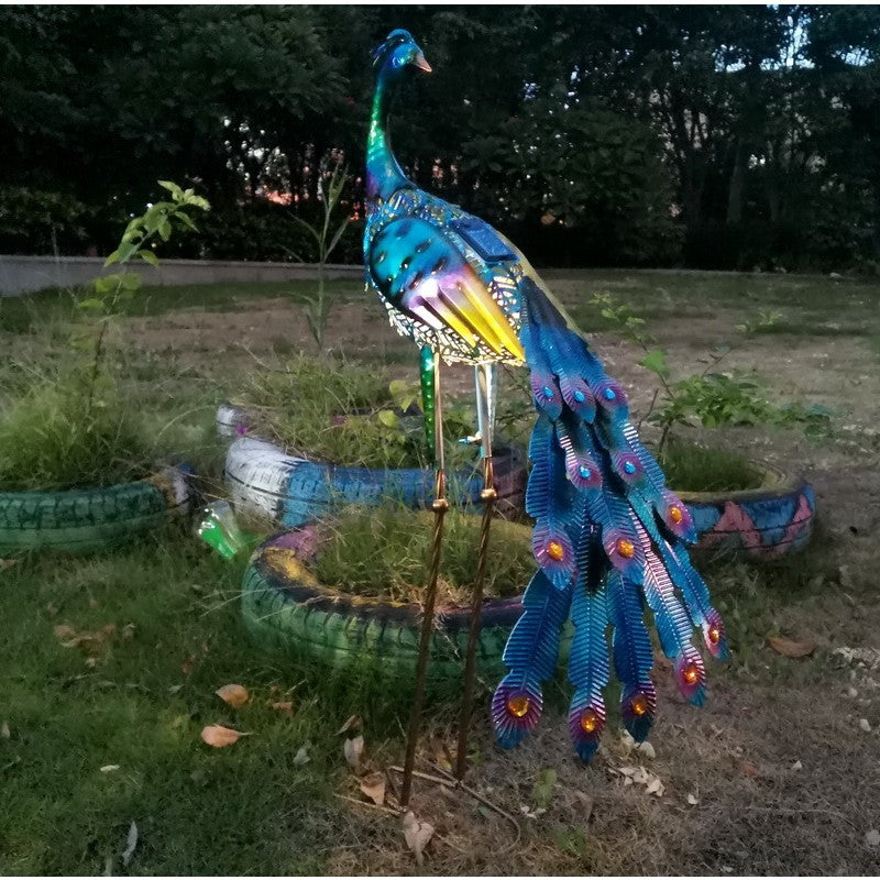 Decoratiune de Gradina cu Lampa solara, Model Paun, Iluminare Led si Incarcare Solara,din Fier
