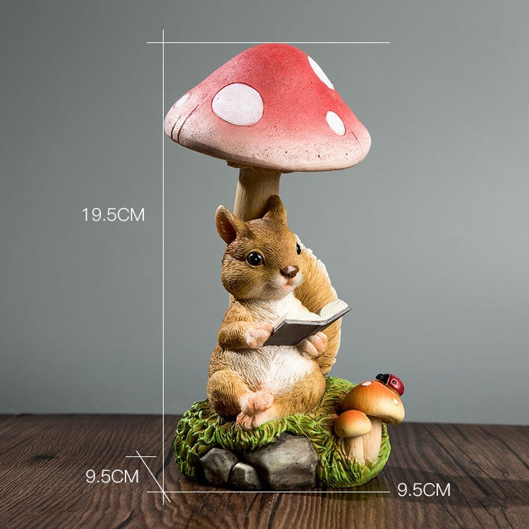 Decoratiune pentru Gradina, Lumini LED cu Incarcare solara,Model Ciuperca cu Veverita care Citeste