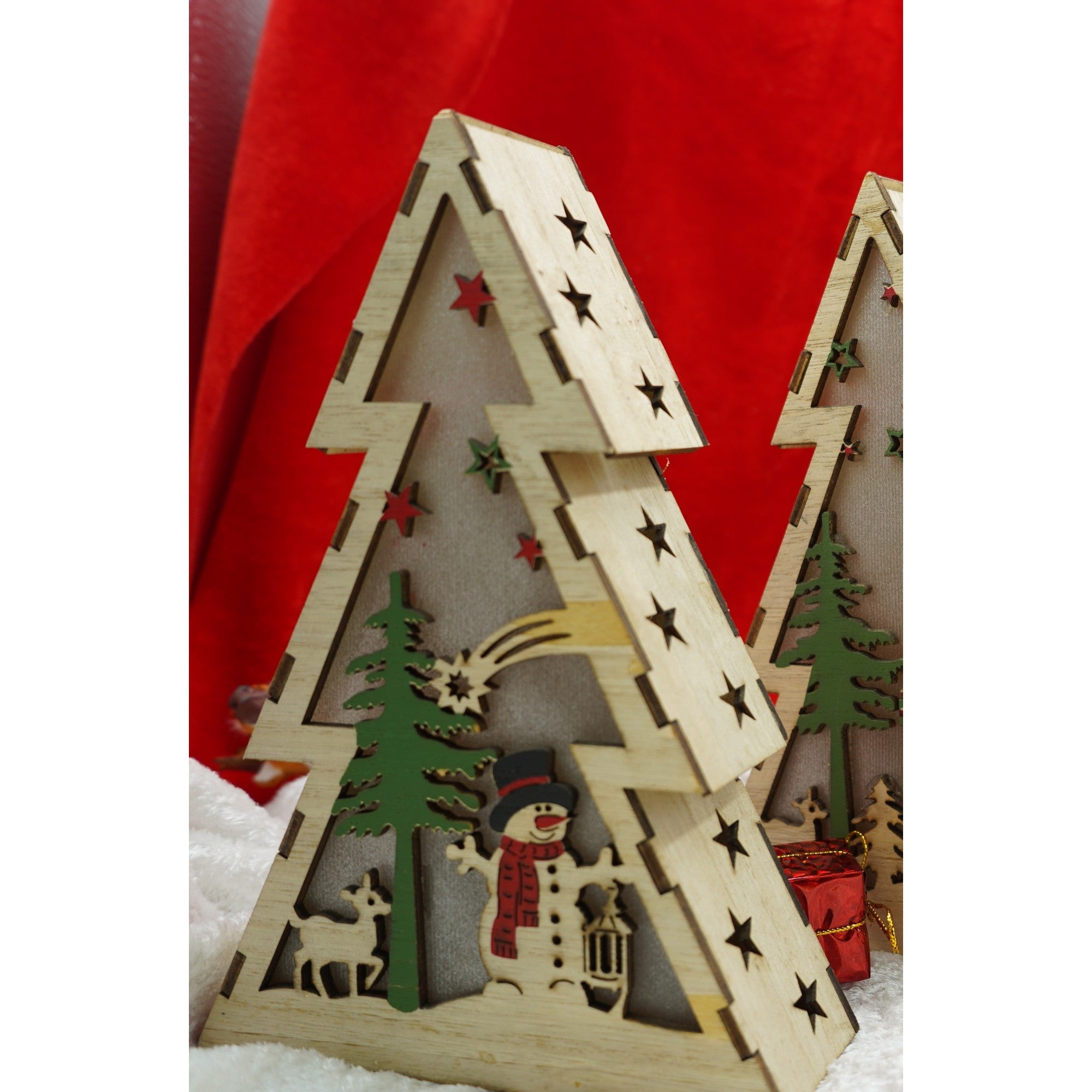Decoratiune luminoasa, model de Brad cu Om de zapada