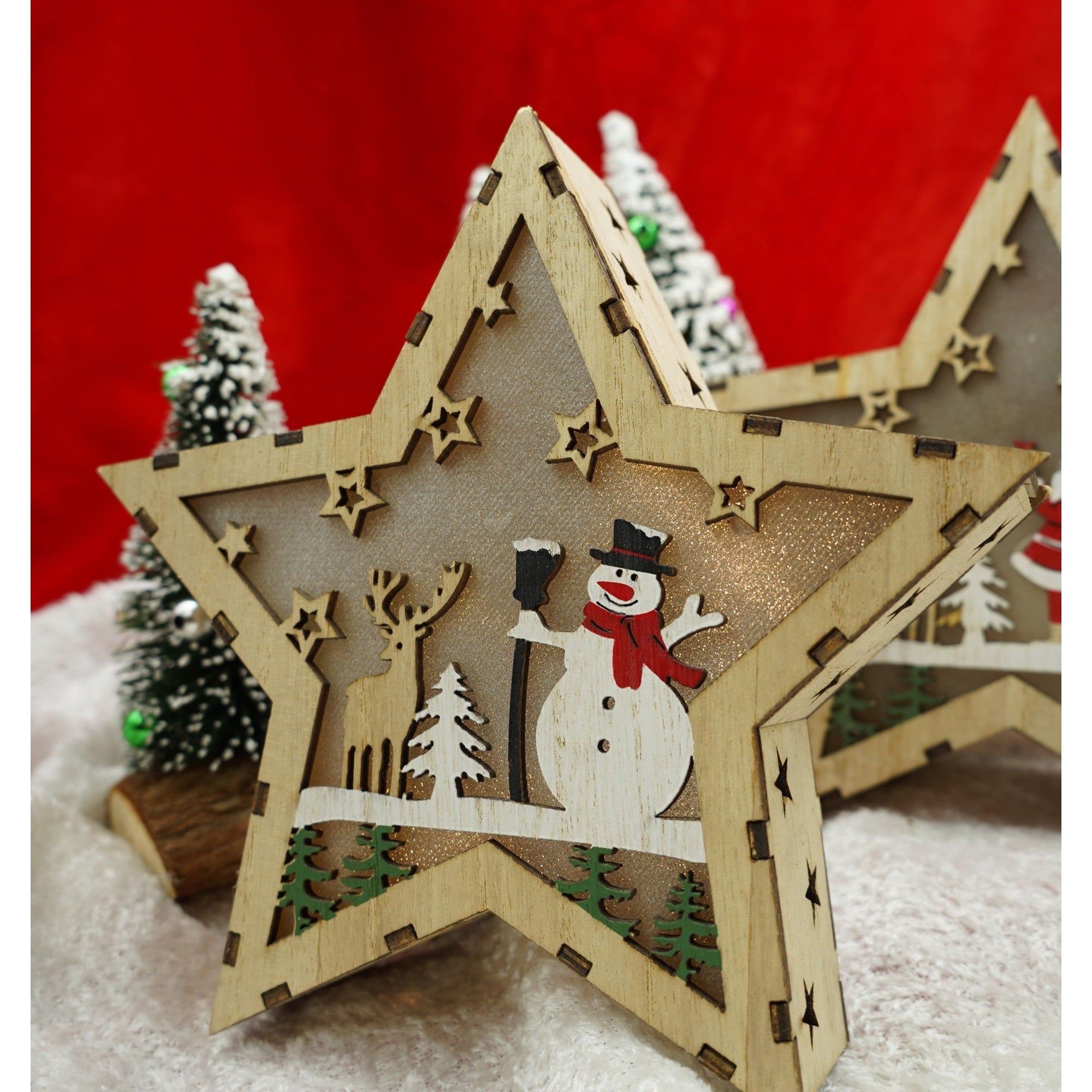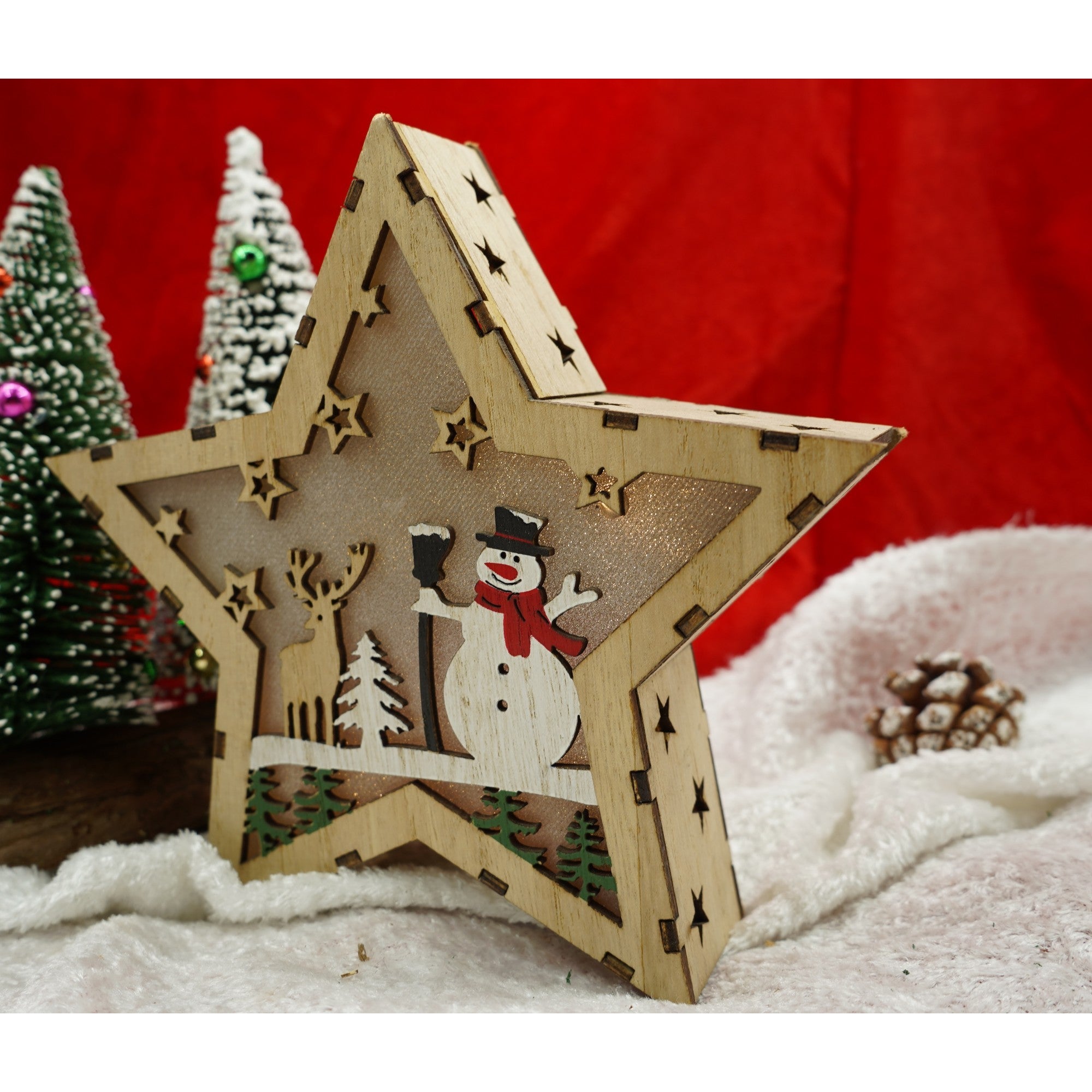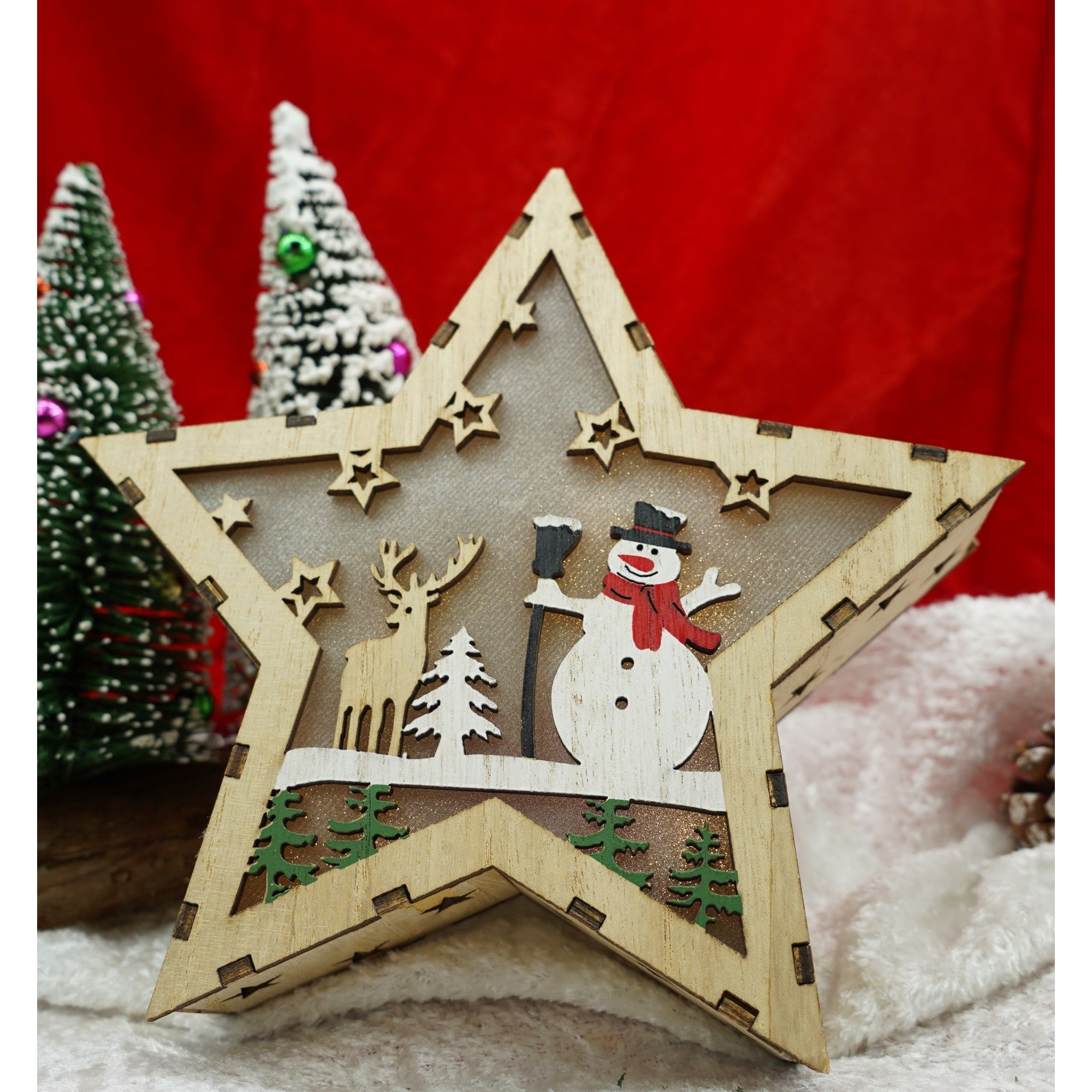 Decoratiune luminoasa, model de Stea cu Om de zapada