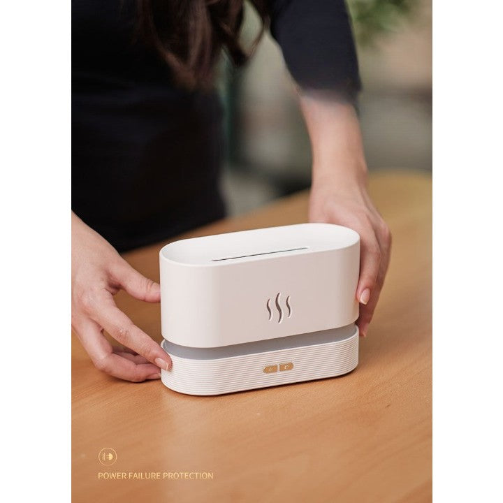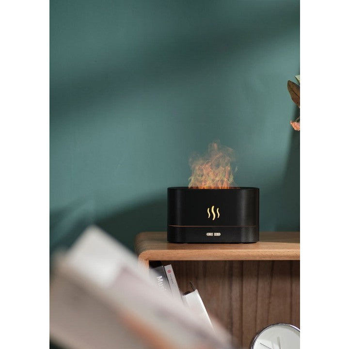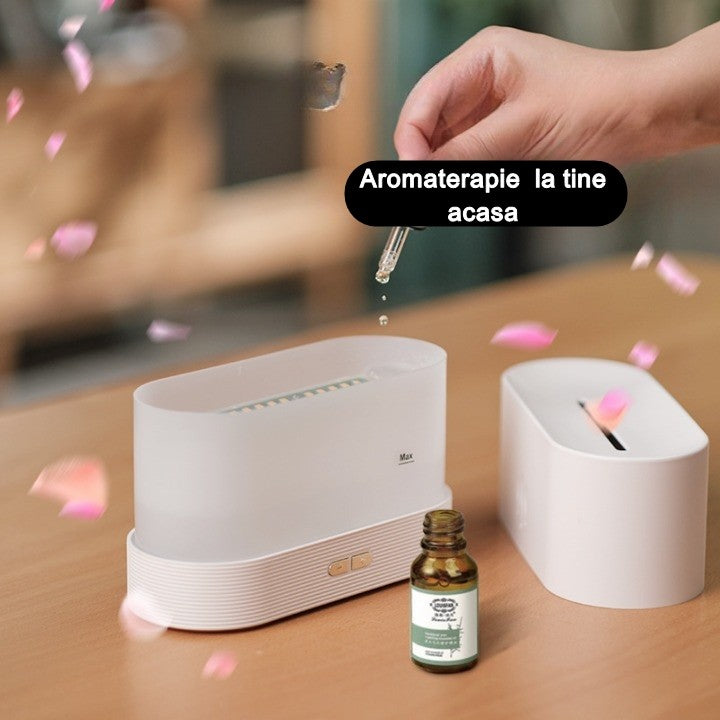 Difuzor de ulei esential cu flacara aromaterapie, umidificator de aer, rezervor 180 ml, simulare efectelor de iluminare a flacarii, lumina veghe ajustabila