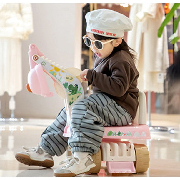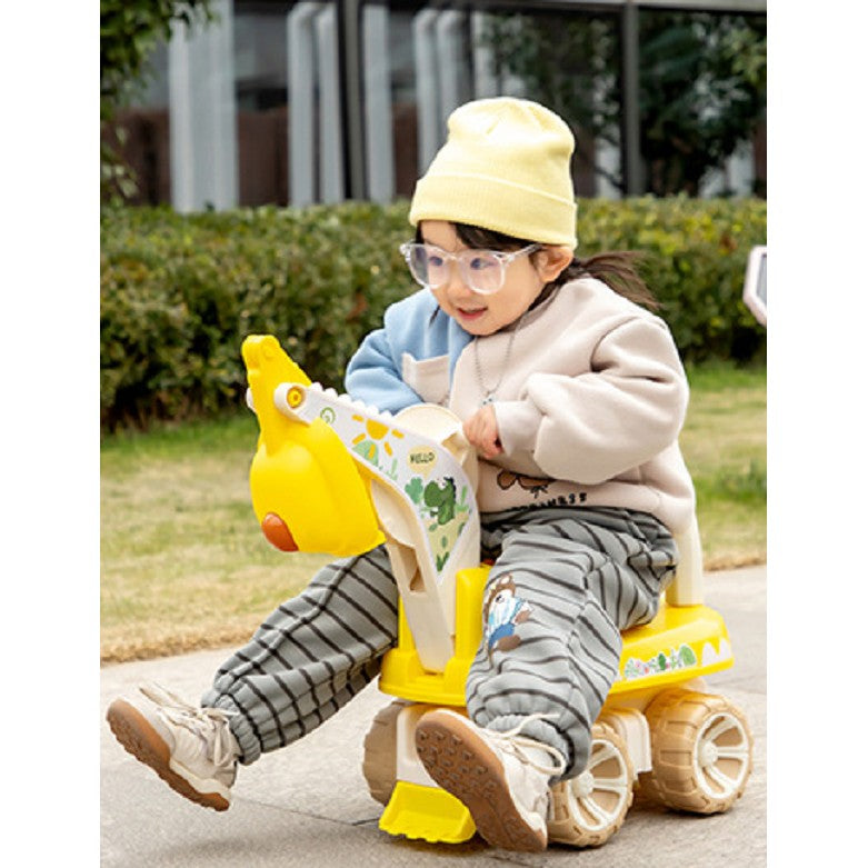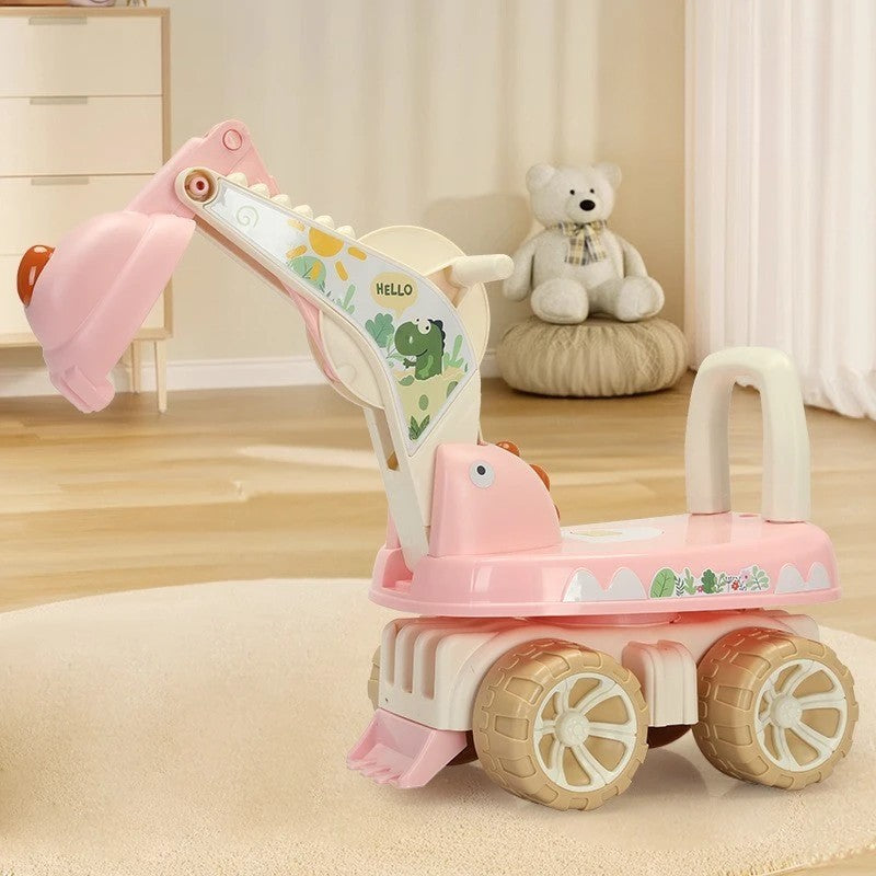 Excavator pentru Copii, 1-3 Ani, Greutate Portanta 30 kg, Muzica si Lumini, Rotatie 360 Grade,4 Roti