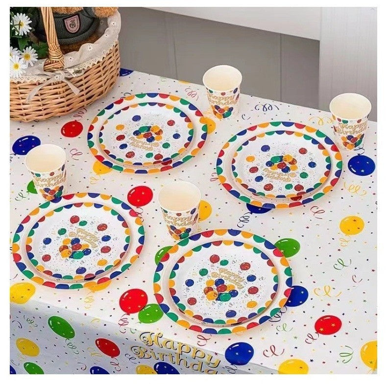 Fata de Masa, din PEVA, Imprimeu Happy Birthday cu Baloane,Impermeabila, Fara Pete, Curatare Rapida