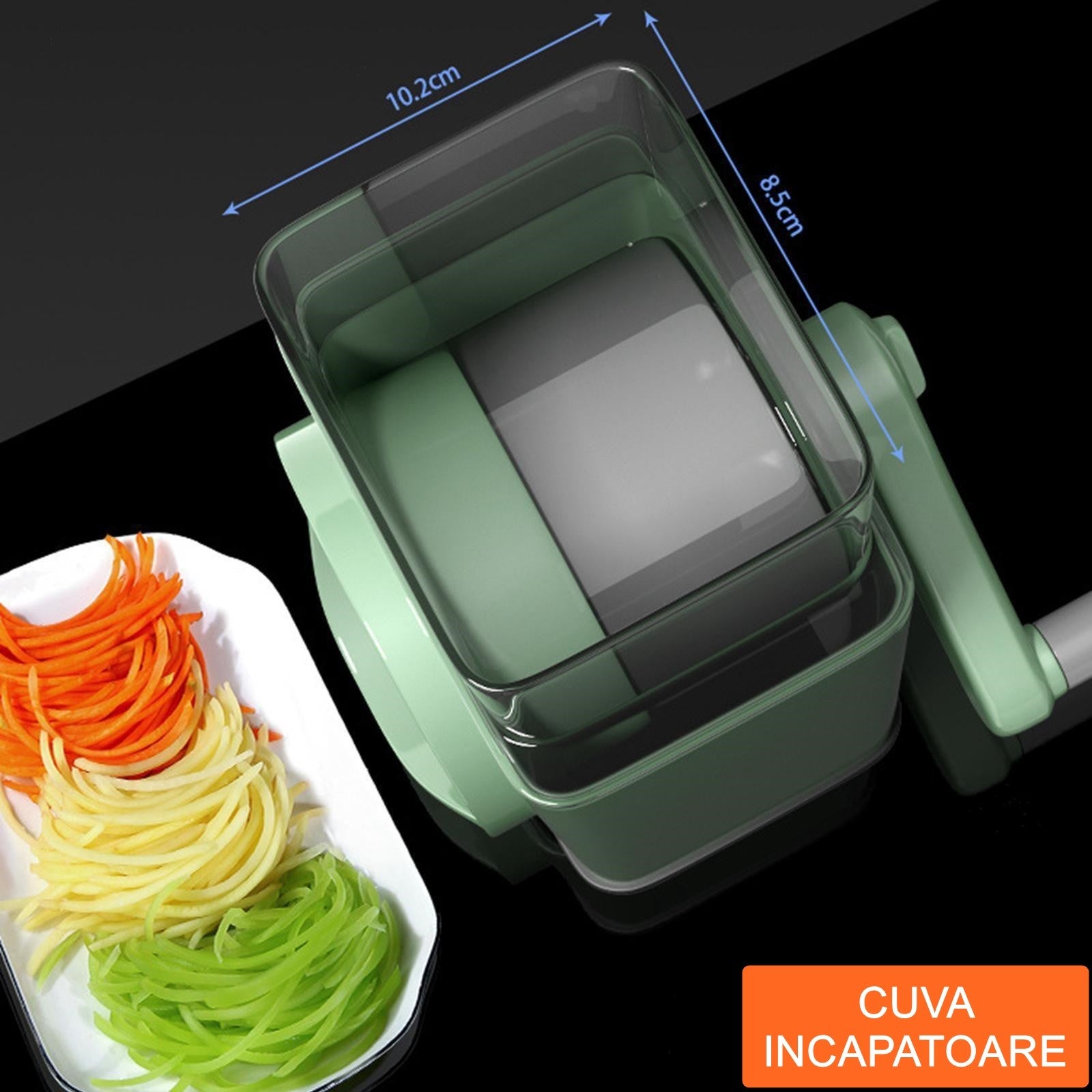 Feliator manual pentru legume 3 lame din otel inxodabil, 3 tipuri de feliere, material carcasa ABS, latime maxima feliere , baza de tip ventuza, usor si sigur de utilizat