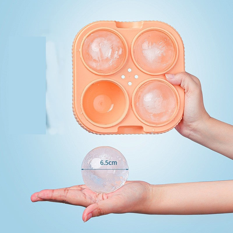 Forma Sfere de Gheata pentru Wiskey si Cocktail-uri 4 Sfere, Material Plastic/Silicon Alimentar, Diametru , cu Orificiu Tip Palnie pentru Umplere