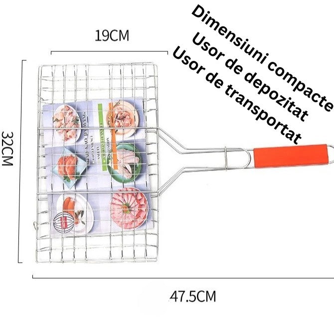 Gratar pentru Peste si Carne, Suprafata Utila , Otel Inoxidabil, cu Maner, Portabil