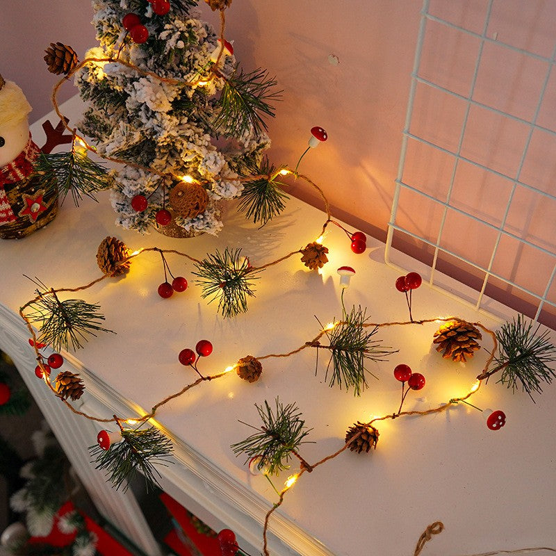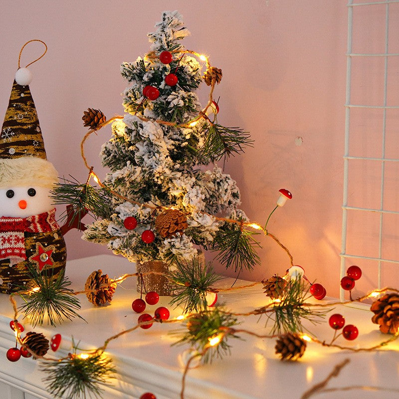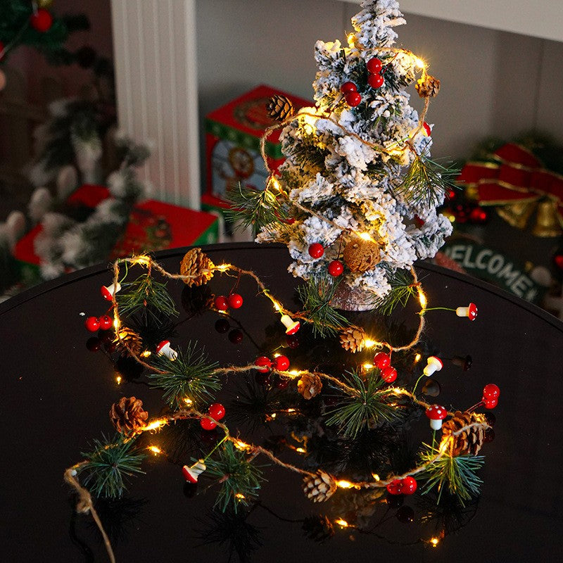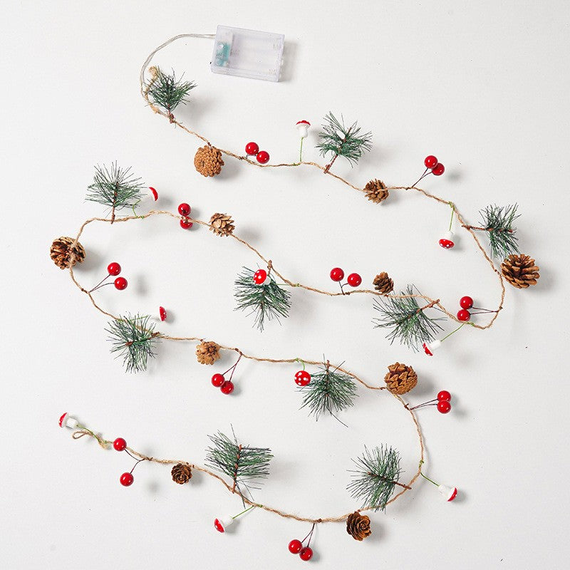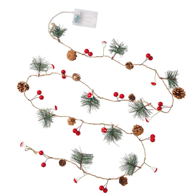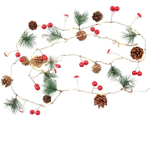 Instalatie Craciun cu baterii, 2 metri, 20 LED-uri tip Ace, conuri de pin si ciuperci