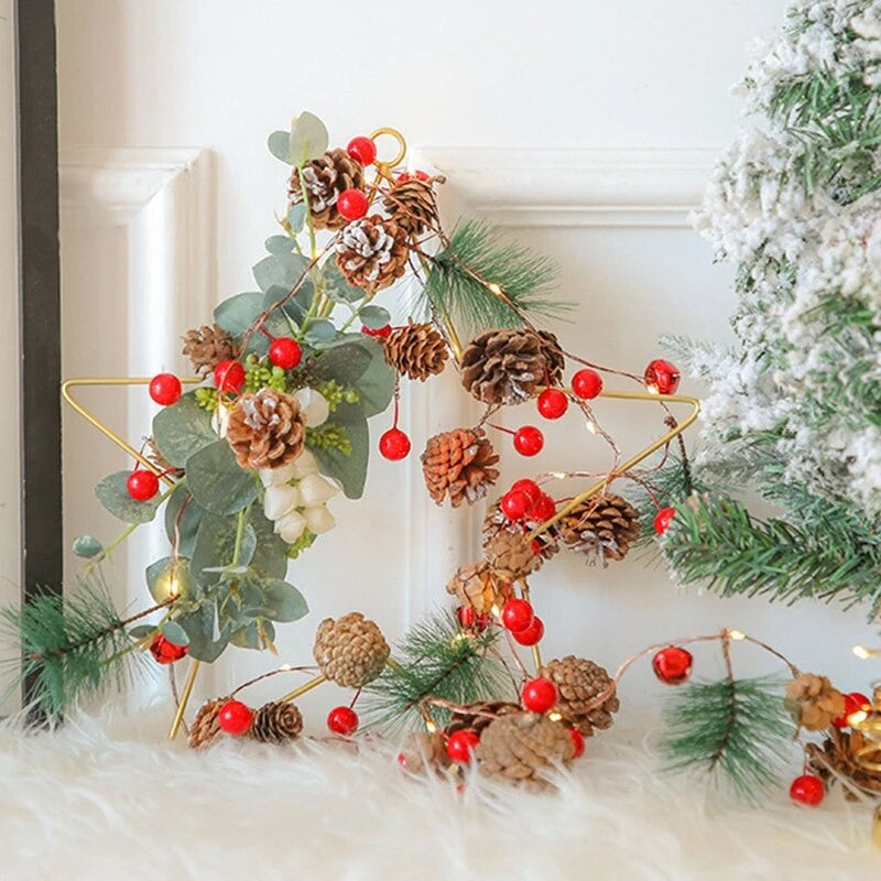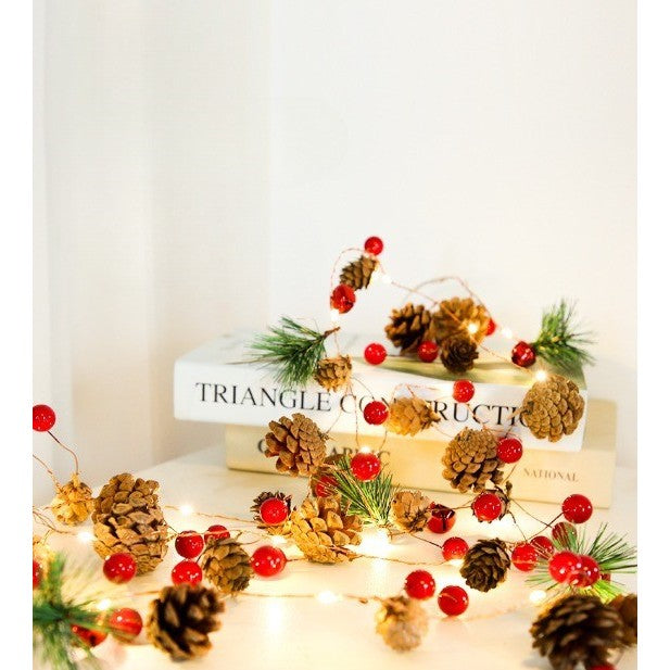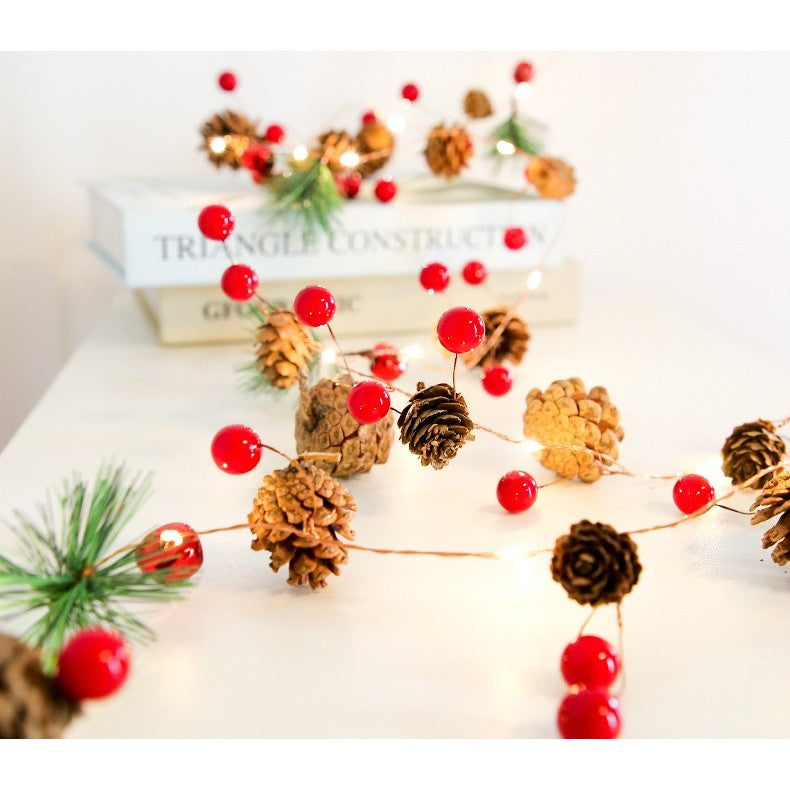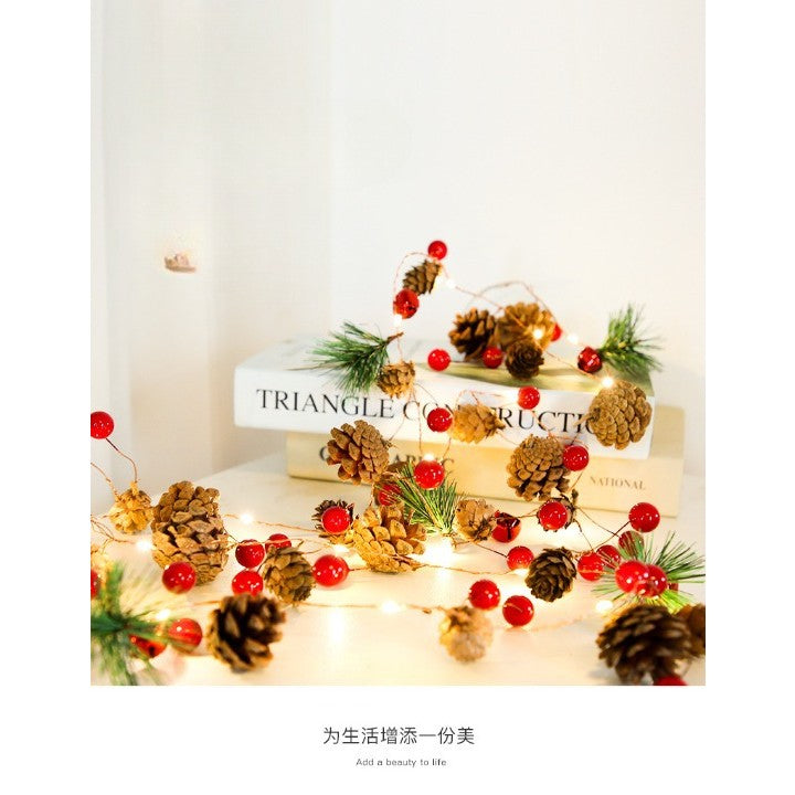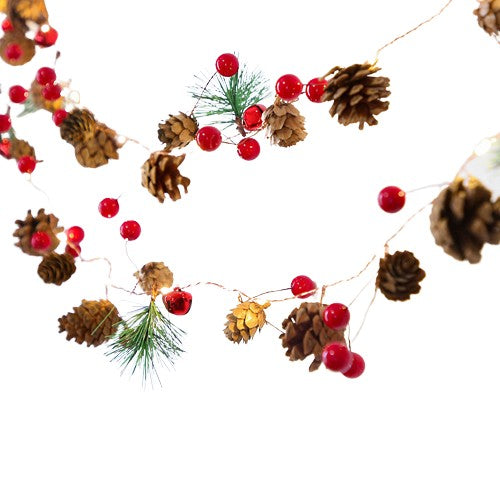 Instalatie Craciun cu baterii, 2 metri, 20 LED-uri tip Ace, conuri de pin si clopotei