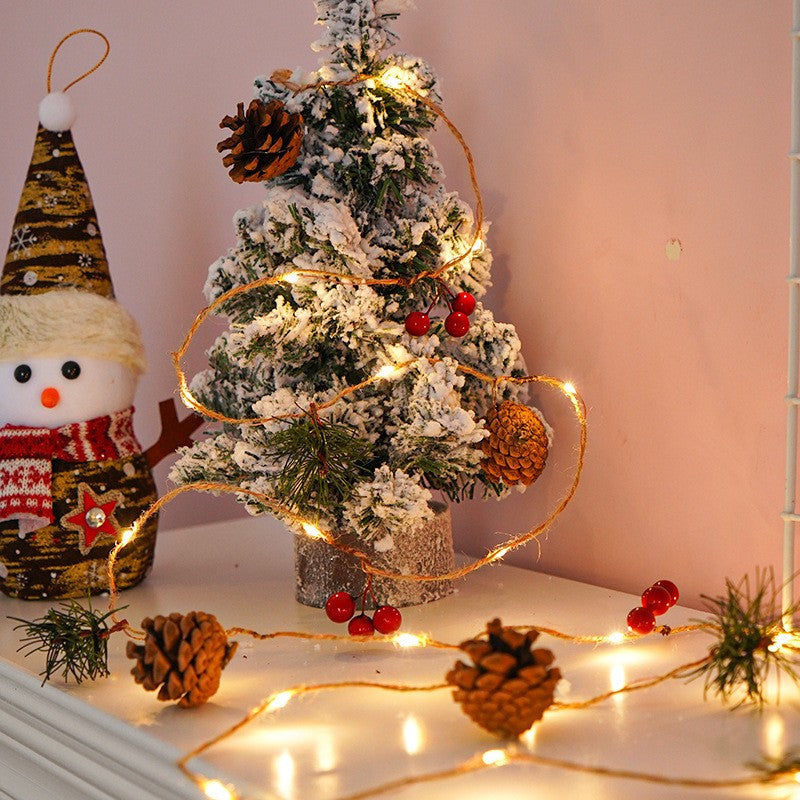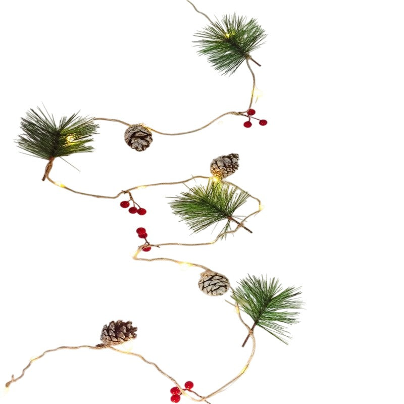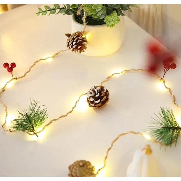 Instalatie Craciun cu baterii, 2 metri, 20 LED-uri tip ace si conuri de pin simple