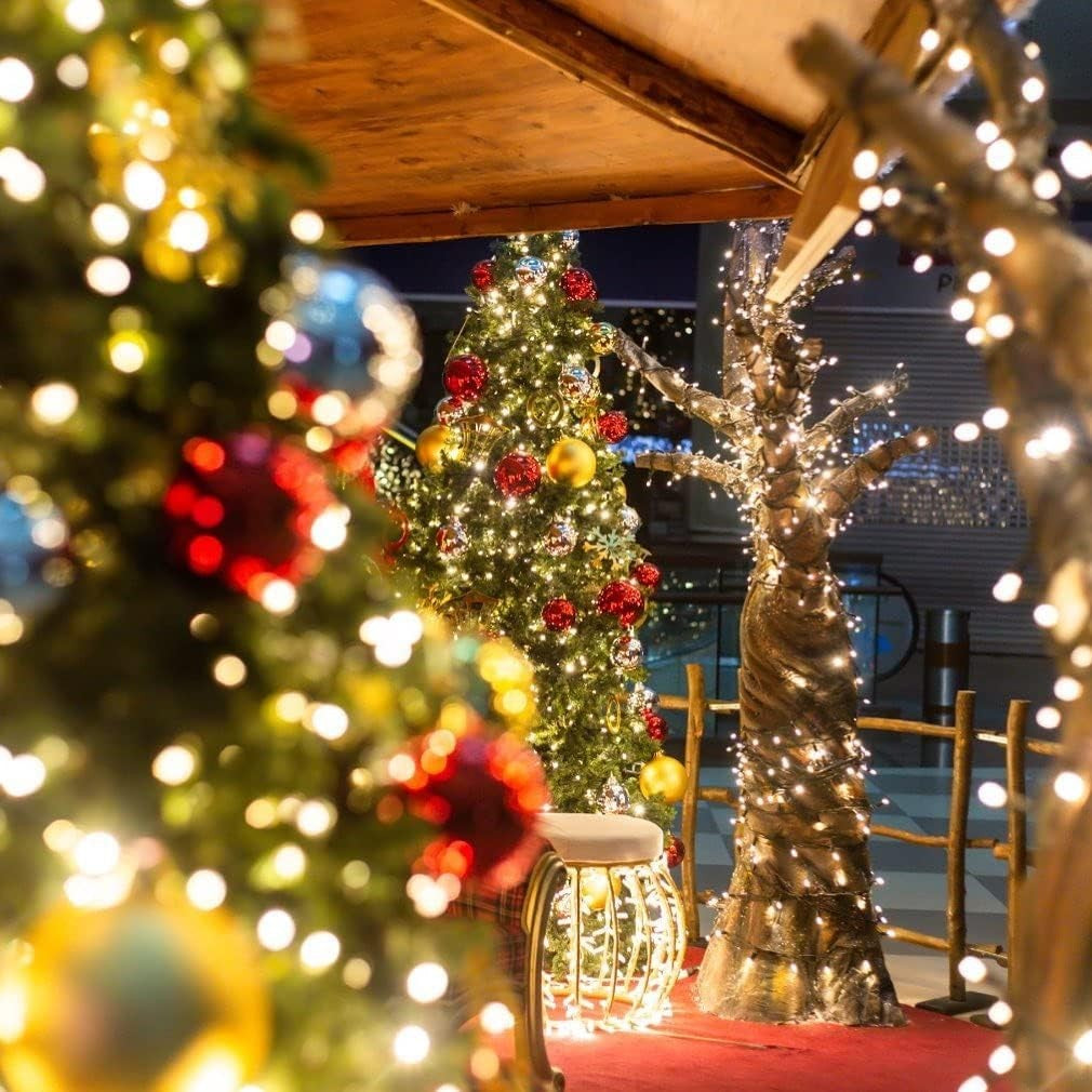Instalatie de Craciun liniara Yoto,din care cablu priza 220V, 200 LED, 8 jocuri de lumini, beculet in 6 colturi, pentru interior, controler, fir
