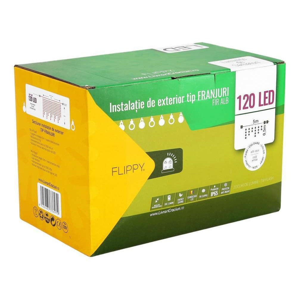 Instalatie de Craciun Premium ® Tip Franjuri, Flash, cu transformator,120 LED-uri, Interconectabila, Fir
