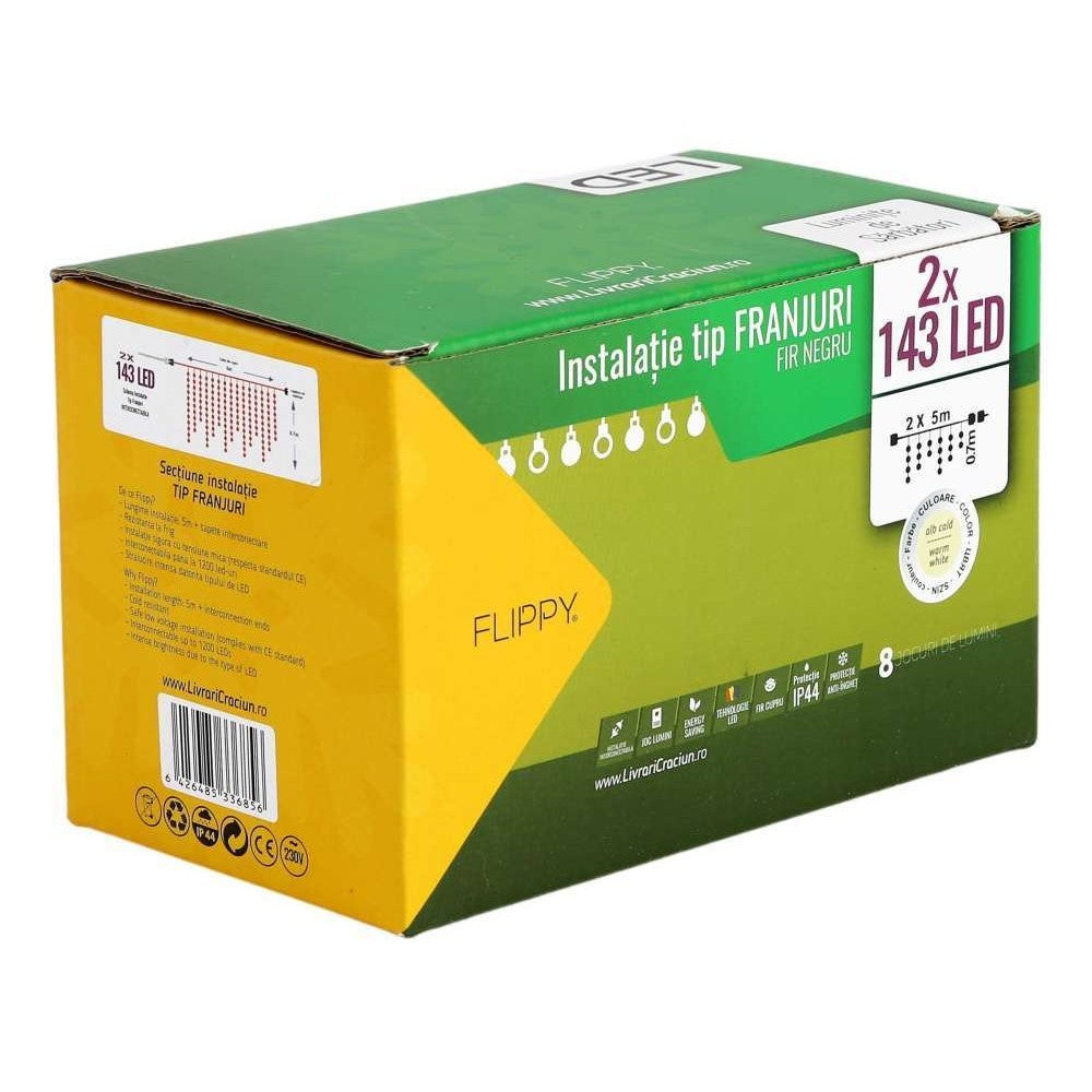 Instalatie de Craciun ® Tip Franjuri, 8 jocuri de lumini cu transformator,286 LED-uri, Interconectabila, Fir