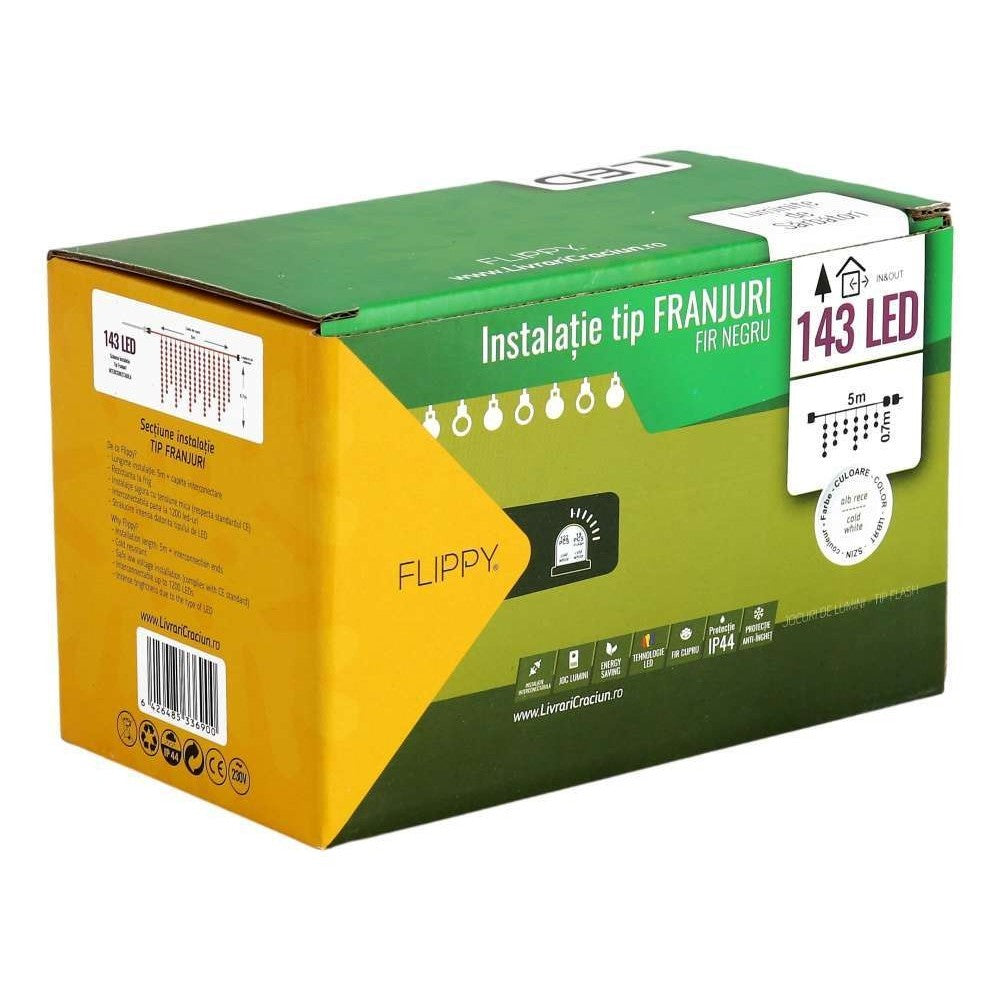 Instalatie de Craciun ® Tip Franjuri, Flash, cu transformator,143 LED-uri, Interconectabila, Fir
