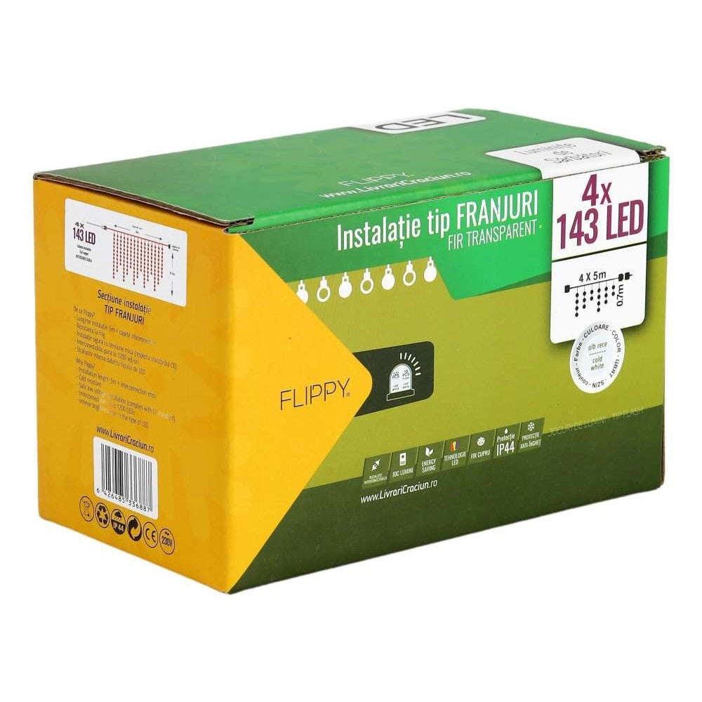 Instalatie de Craciun ® Tip Franjuri, Flash, cu transformator,572 LED-uri, Interconectabila, Fir