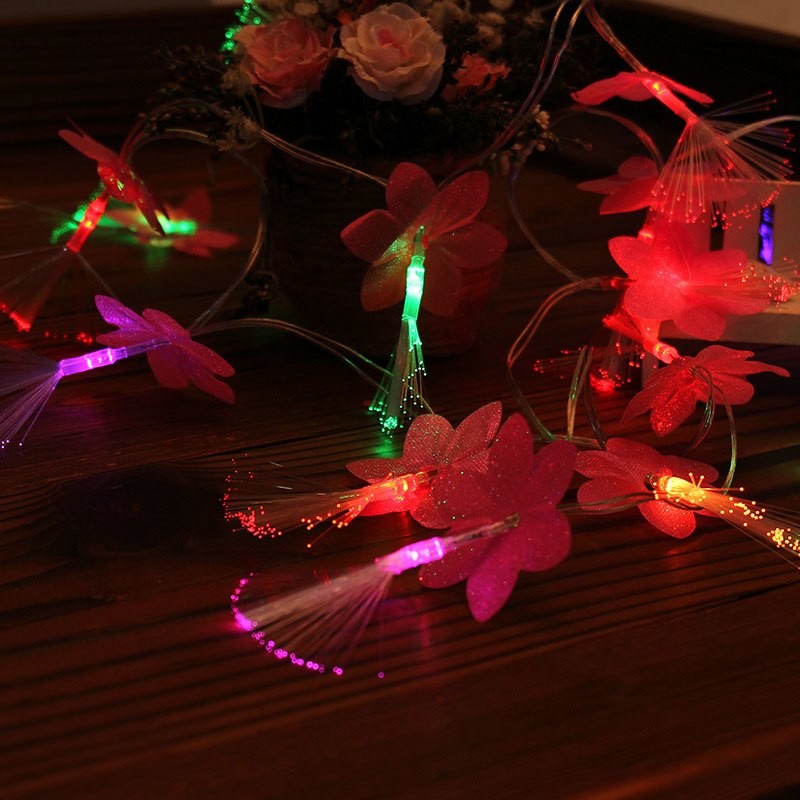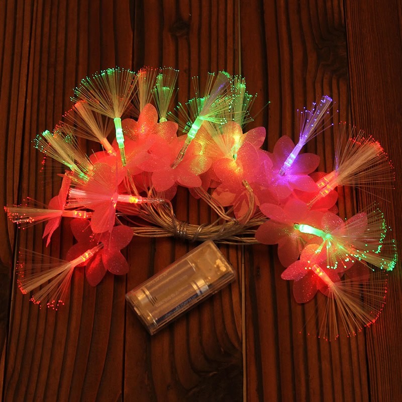 Instalatie de Craciun, ®, Tip Sir cu Baterii,20 LED-uri, Fibra Optica, Flori