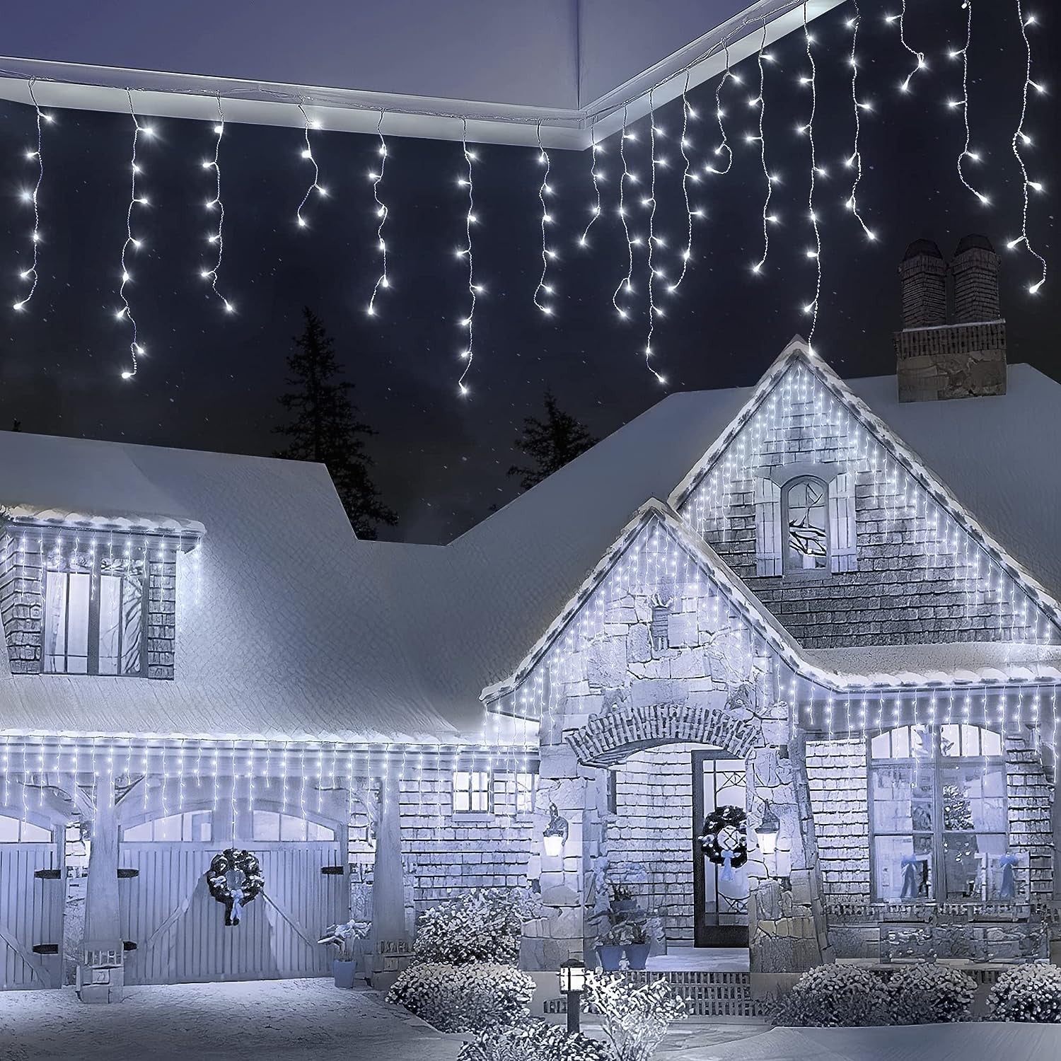 Instalatie Craciun Yoto, Tip Franjuri/Turturi,120 LED-uri, Prelungitor , 8 Jocuri de Lumini, Interconectabila, Conectare la Retea, Fir
