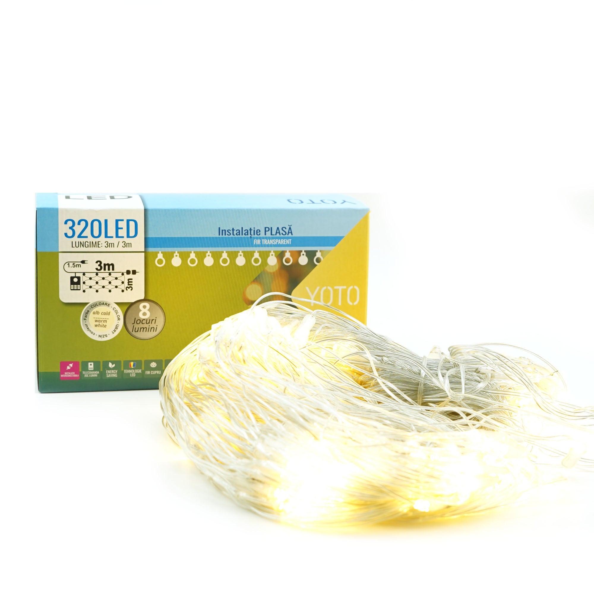 Instalatie Craciun Yoto, Tip Plasa, x , 320 LED-uri, Prelungitor , 8 Jocuri de Lumini, Interconectabila, Fir