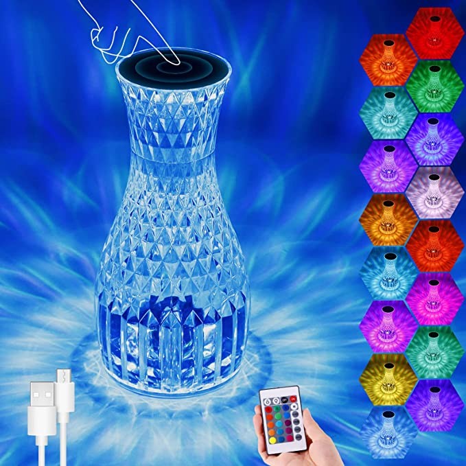 Lampa de birou pe LED RGB 16, dimmer tactil, 3 nivele de intensitate, incarcare USB, 3W, Cristal Acrilic,cu telecomanda, forma vaza