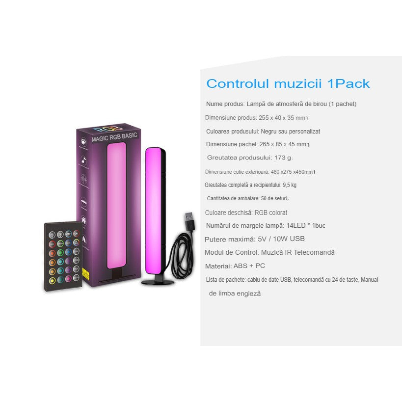 Lampa de Birou, RGB Colorat, 14 LED, Putere 5V, Telecomanda cu 24 de Taste, Cablu USB