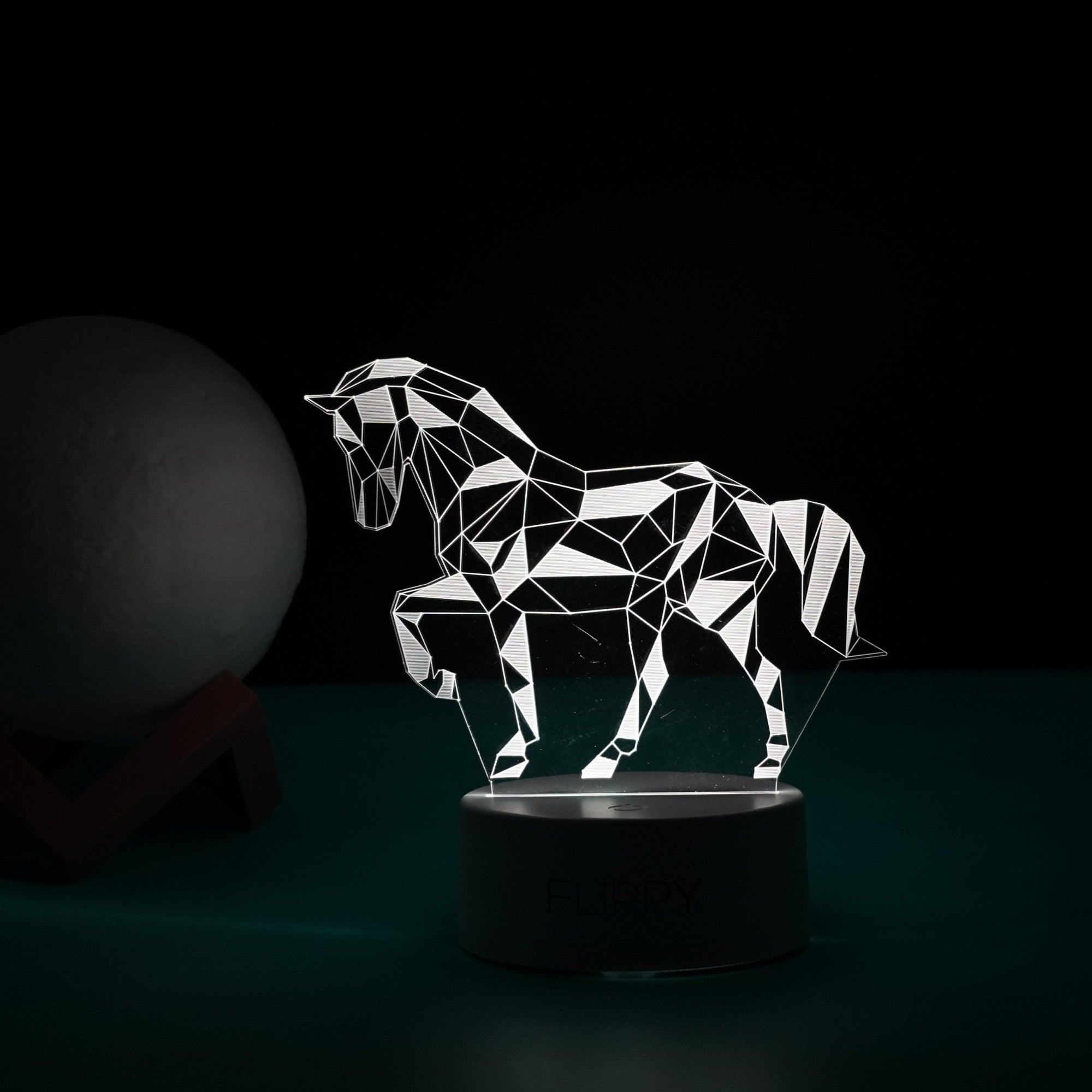 Lampa LED decorativa, 3D, Cal, cu telecomanda, doua moduri de alimentare USB si baterii, inaltime, din material acril si lumina multicolora
