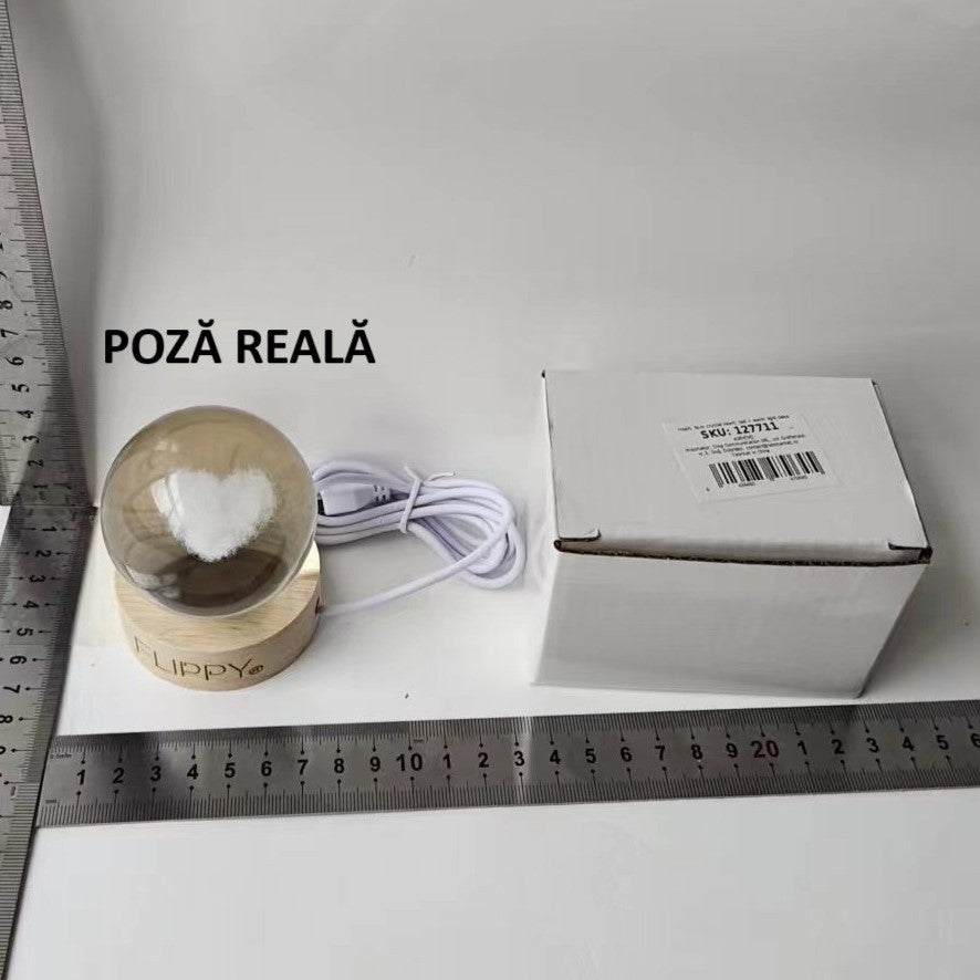 Lampa LED Decorativa, Bila de Cristal cu Diametru , Model Inima 3D, Alimentare USB, Suport din Lemn, Lumina