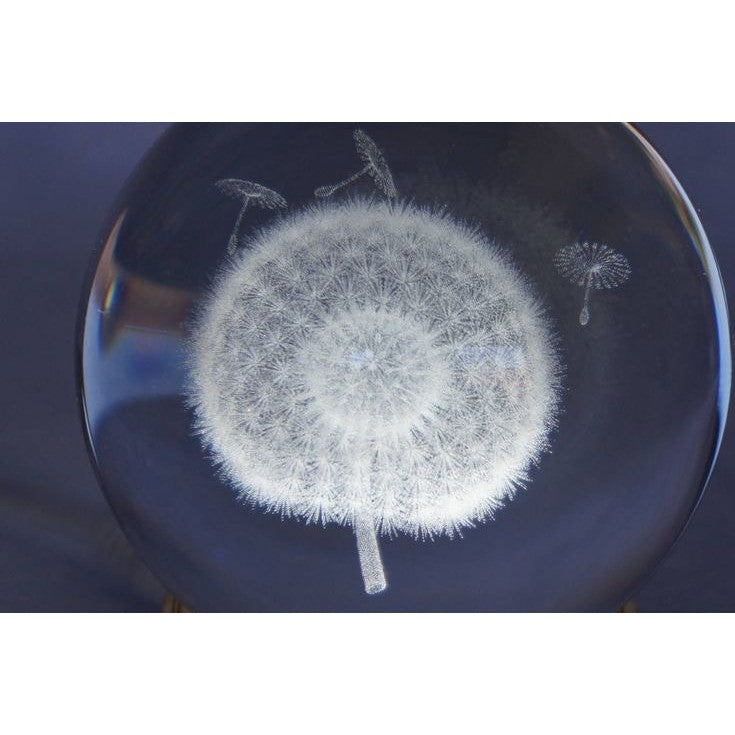 Lampa LED Decorativa, cu Bila de Cristal cu Diametru , Model Papadie 3D, Alimentare USB, Suport din Lemn, Lumina