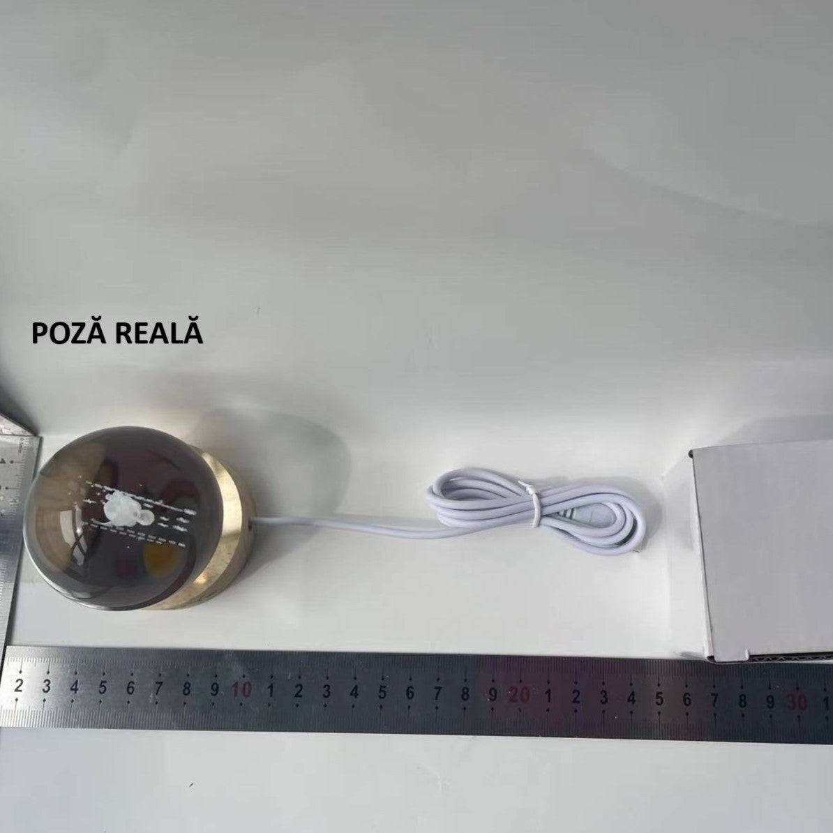 Lampa LED Decorativa, cu Bila de Cristal cu Diametru , Model Micul Print 3D, Alimentare USB, Suport din Lemn, Lumina