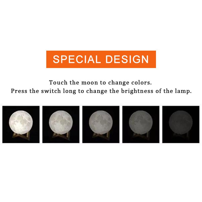 Lampa de veghe in forma de luna cu stele 3D Moon Light, Acumulator integrat, alimentare USB, stand din plastic inclus,16 culori